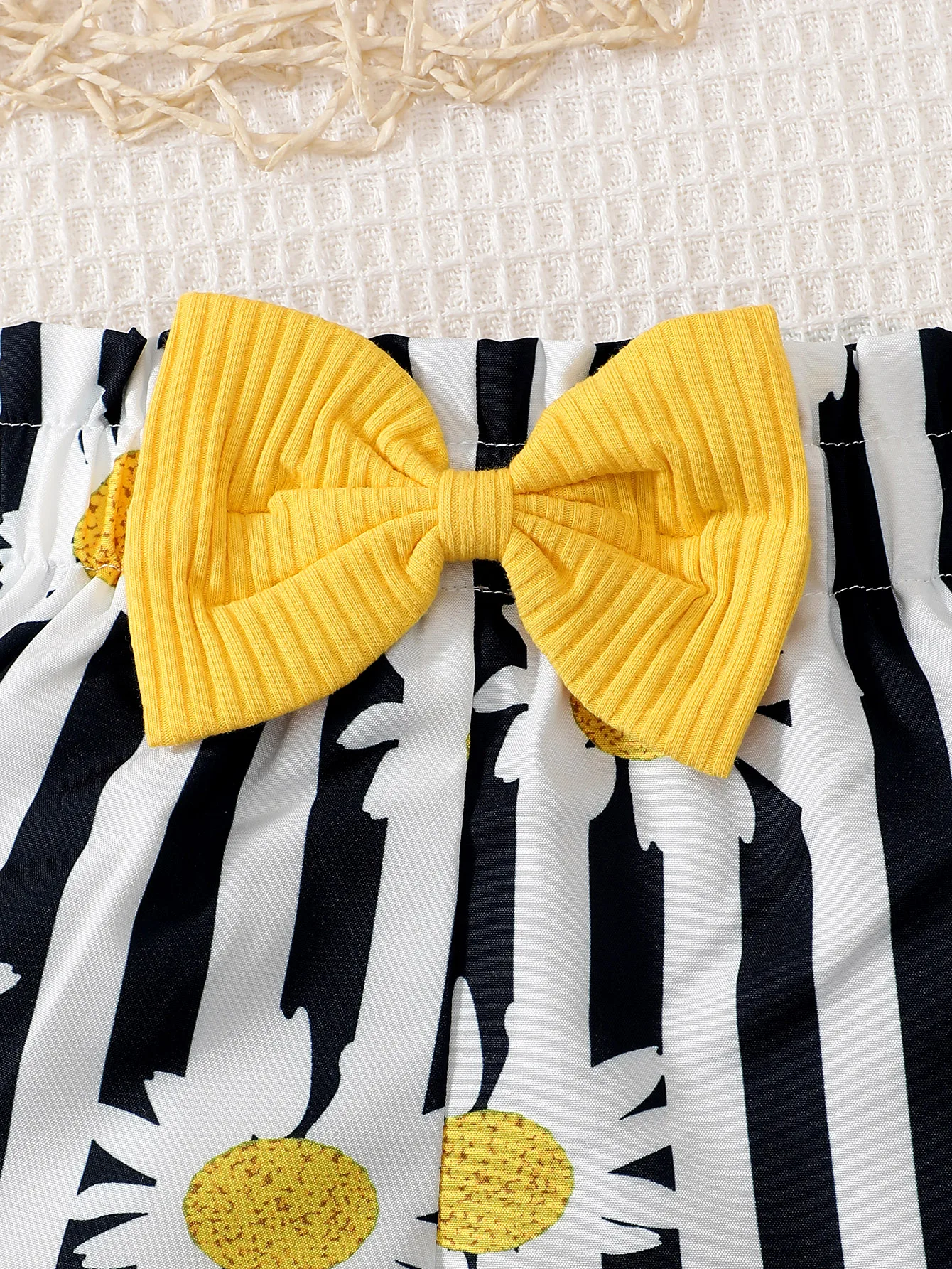 0-2 Year Old Newborn Baby Summer Digital Printed Bow Decoration Casual Daily Wear Headscarf Baby Clothes