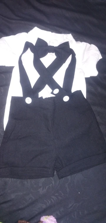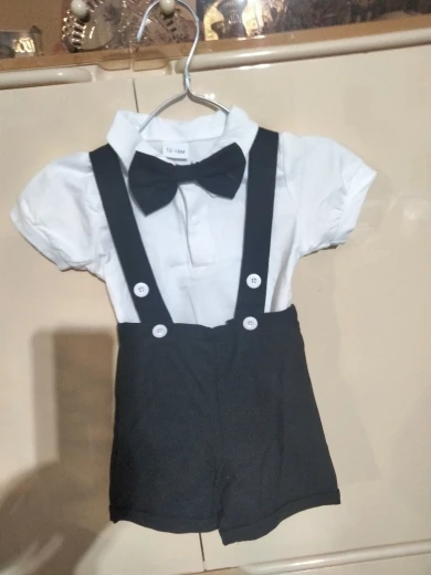 5 reviews for 0-2 Years Baby Boy Mini Gentlemen Outfits Wedding Party Set Peter Pan Collar Cotton Romper+Suspender Shorts Summer 2PCS Suit
