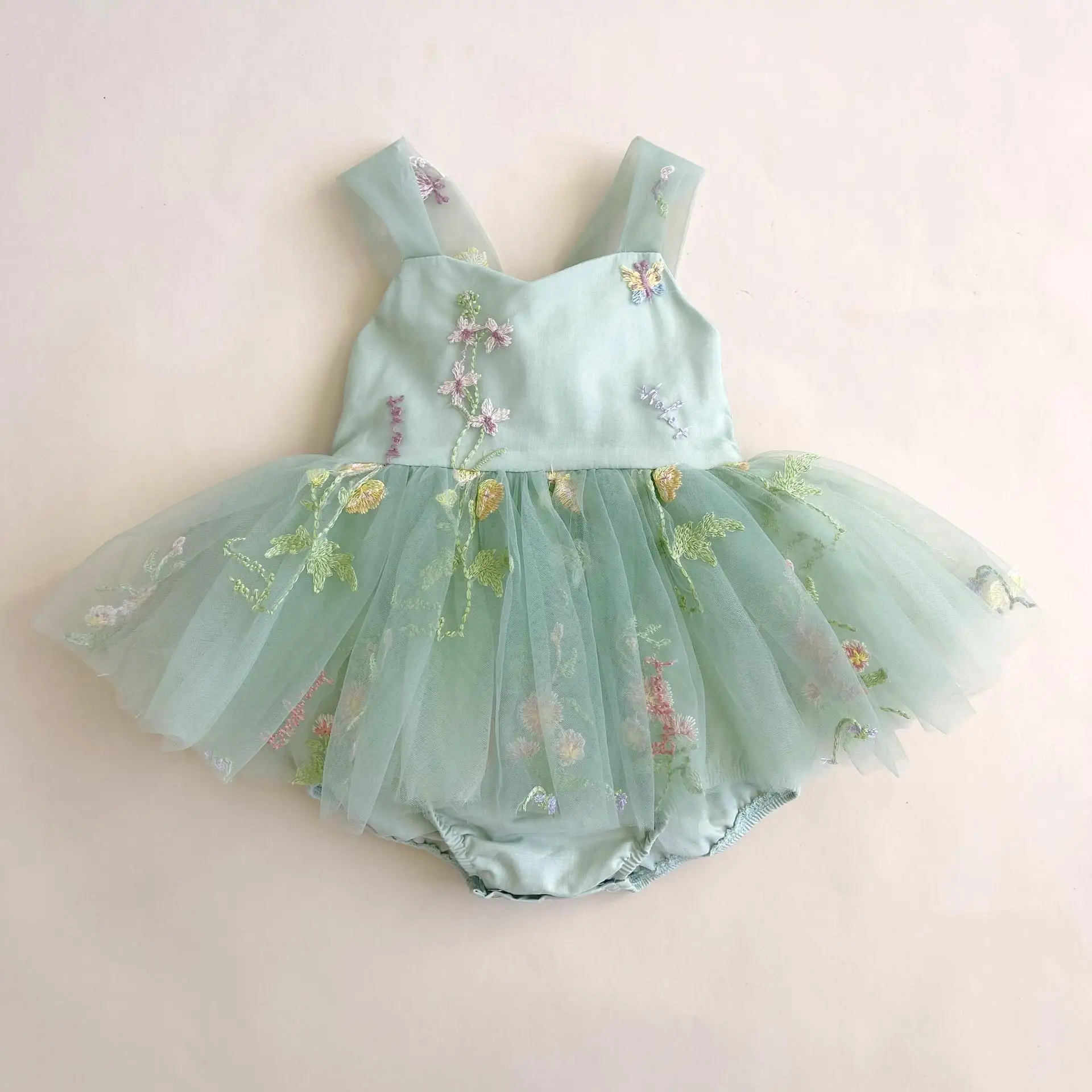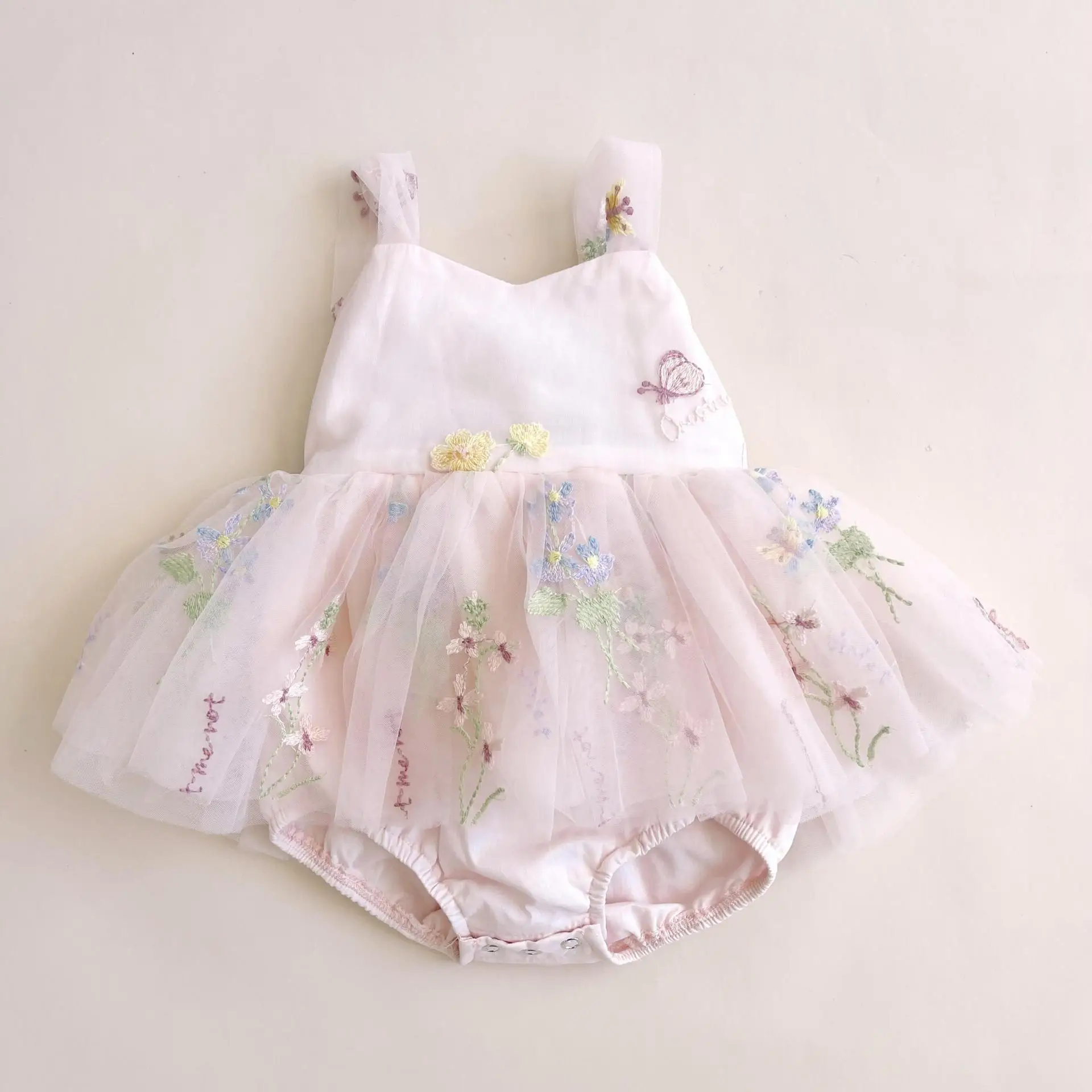 0-2 Years Old Baby Girls Romper Gauze Embroidered Flower Patterns Sling Baby Jumpsuit Summer Infant Clothes