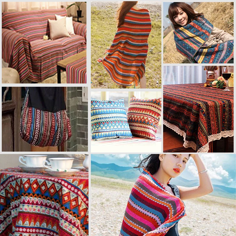 0.5/1/2/3M Linen fabric Thicken Ethnic Fabric Polyester printed cloth Curtain Decorative cloth diy Handmade Tablecloth carpet