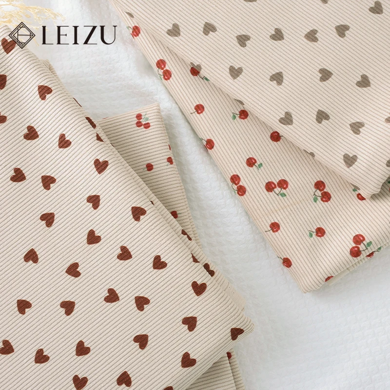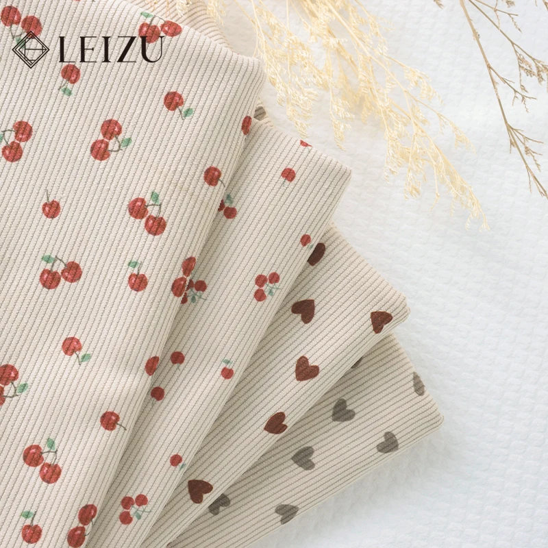 0.5/1/2Yard Ribbed Corduroy Fabric Cute Cherry Heart Print Spring Autumn DIY Sewing Fabric Making Pants Jacket Clothing Cloth