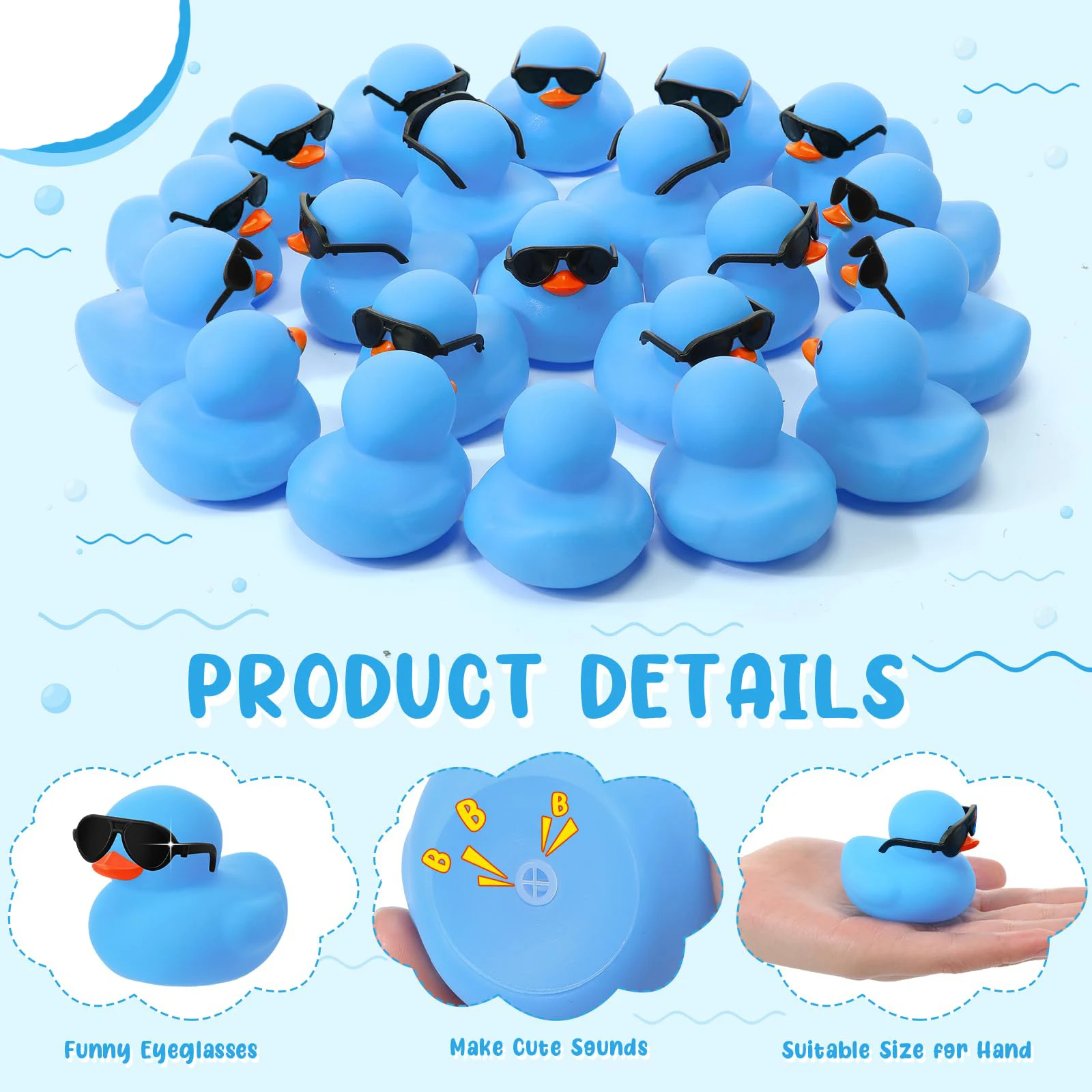 1-100pcs Blue Mini Rubber Ducks in Bulk with Sunglasses Duck Gifts Mini Bath Ducks Small Duck Float Pool Ducks Bulk Toys