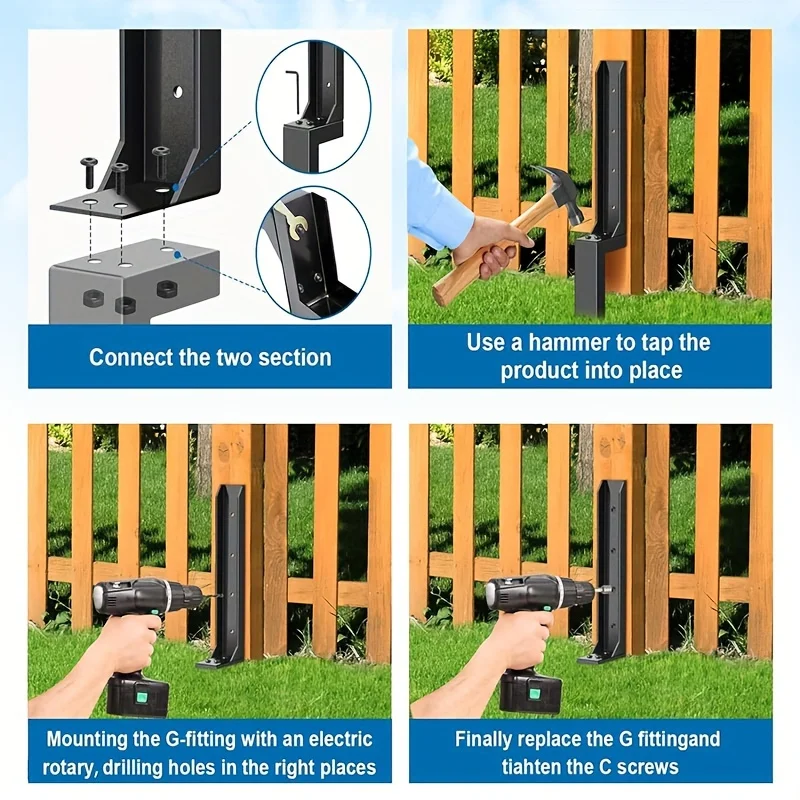 3 reviews for 1/2 Pcs Heavy-Duty Steel Fence Post Repair Kit with Ground Anchors – Black, Ideal for Wooden & Metal Fences,Column Repair Kit
