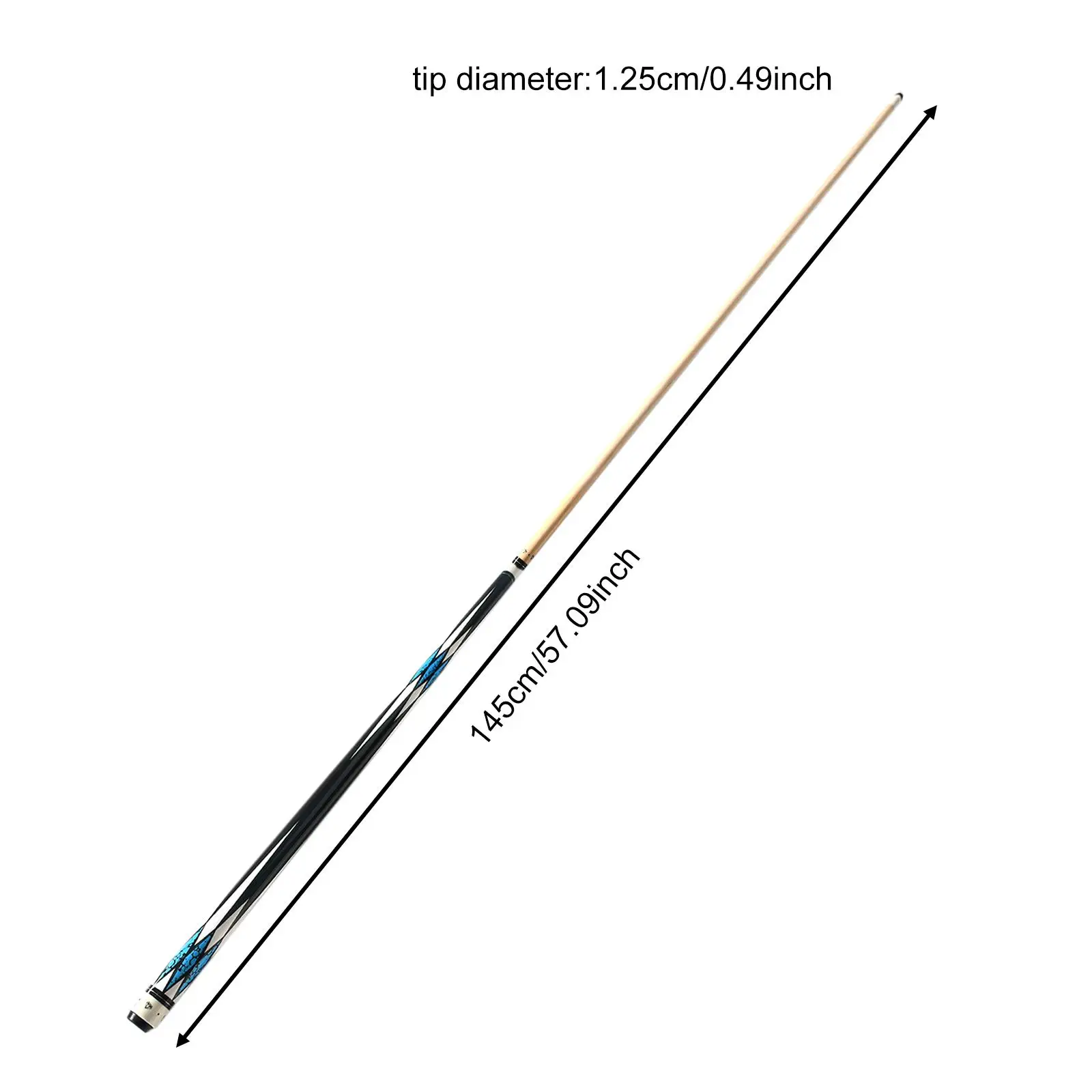 【Size】: The total length of the cue is 145cm/57.09inch, divided into two sections, and the diameter of the club head are 1.25cm/0.49inch
