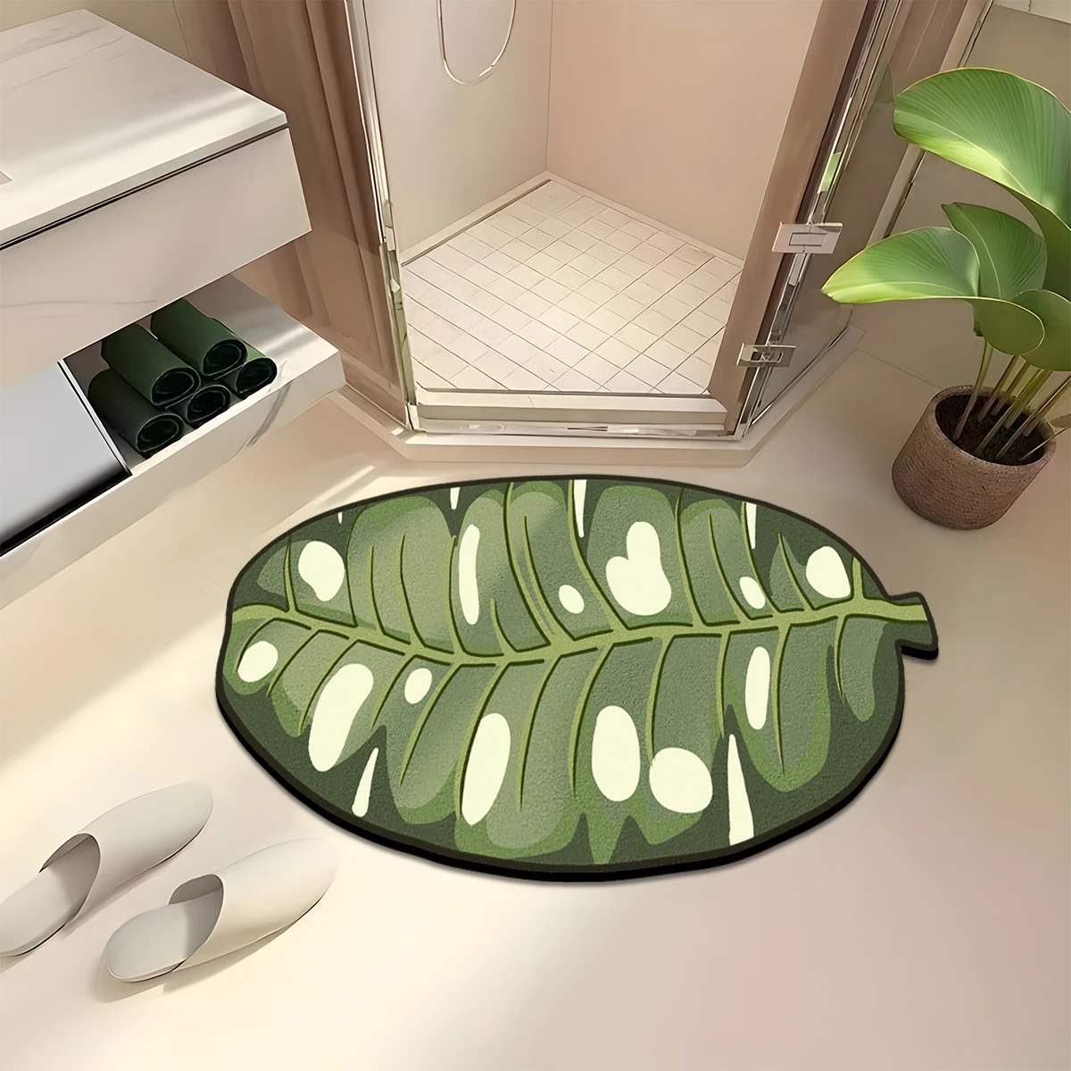 3 reviews for 1.2cm thick leaf flannel bathroom non-slip floor mats dirt-resistant foot mats absorbent floor mats porch entrance decorative