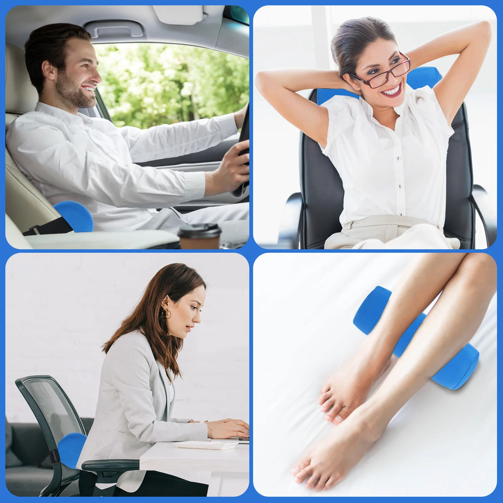 [Multi-functional Use] This roll pillow can be installed in car seats, office chairs and aircraft seats. And, you can adjust the elastic buckle to fit different chairs and seats. Also, it can be used as a lumbar pillow and neck pillow to help improve posture and provide comfort while you sit, drive and work. The lumbar roll pillow is great for travelling, working, driving and coming home use