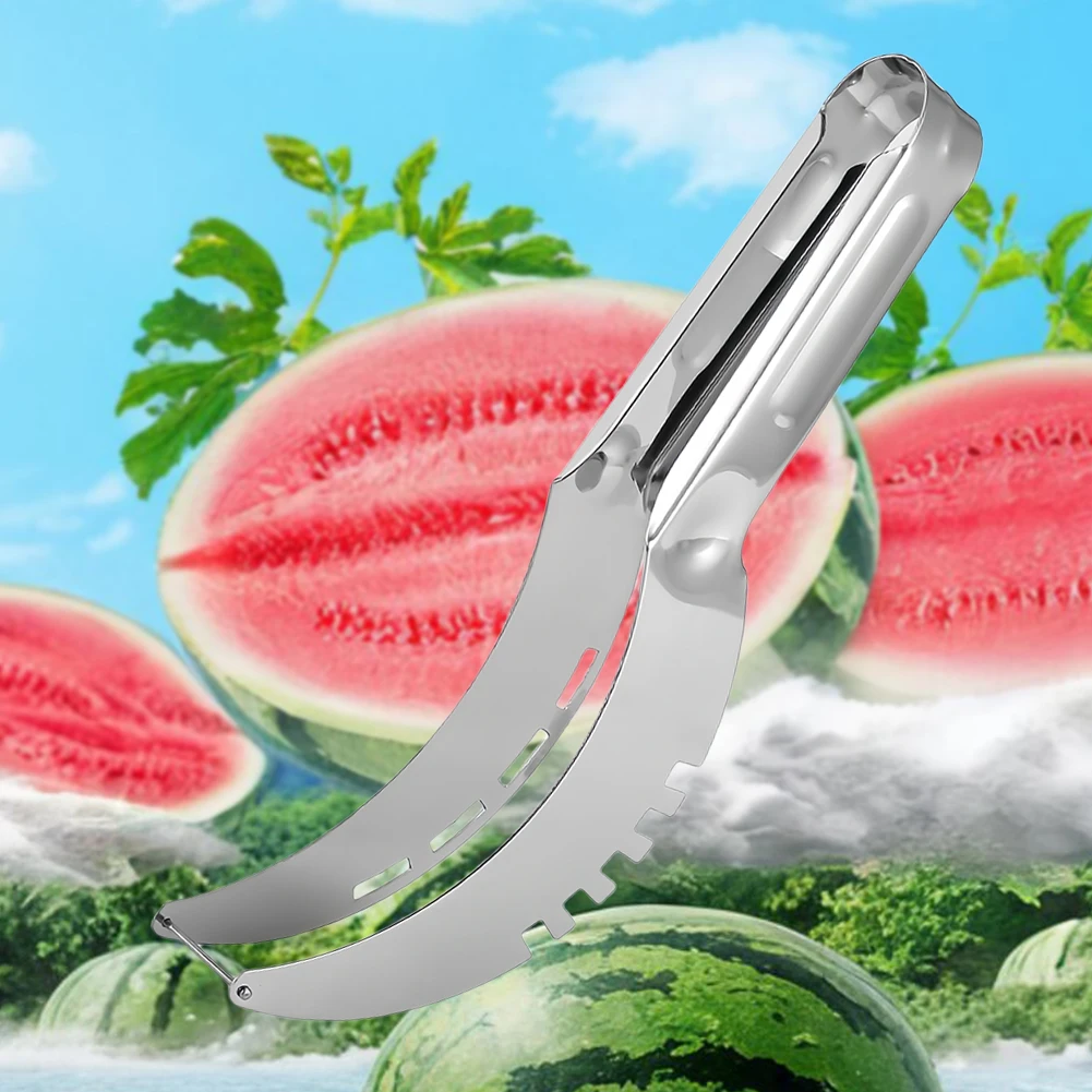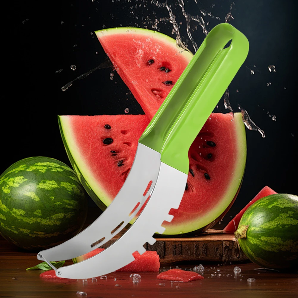 2. Efficient and Mess-Free: With the safe efficient watermelon slicer server, you can cut directly from the rind, collecting all the juice in the rind like a bowl. Slice your watermelon in half the time, ideal for making smoothies or fruit salads.