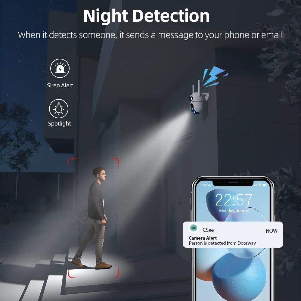⑤ supports full-color mode, infrared mode and double-light alert mode