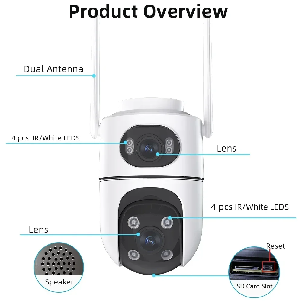 1-5PCS 4K 8MP Dual Lens Wifi Camera Outdoor PTZ Night Vision Human Detection Track Alarm Security Protection Surveillance IP Cam