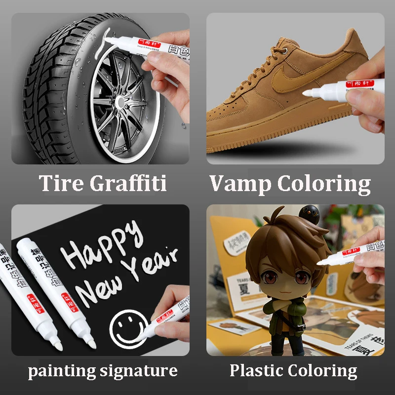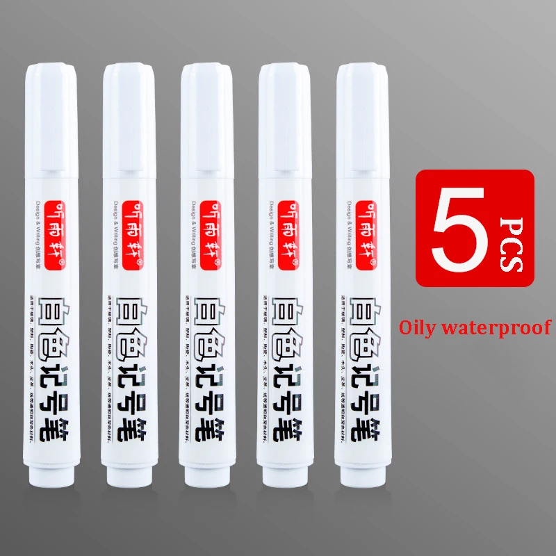 1-5pcs White Markers Oil Waterproof Permanent Gel Pens Fiber Tips ручки For Shoes Tire Metal Glass Drawing Writing Art Supplies