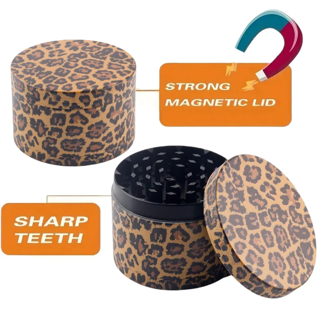 1.6/2 Inch Leopard Print Herb Grinder Portable 4 Sections Spice Grinder Cigarette Shredder Kitchen Gadgets Smoking Accessories