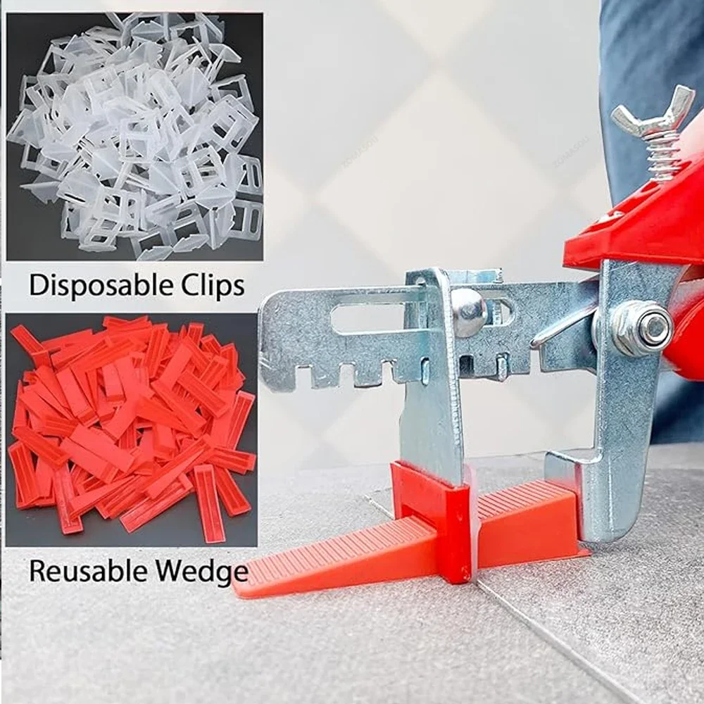 The tile leveler adjuster is suitable for thickness of 8-12mm ceramic tile, accurate 1-3mm seam. The Tile Leveling System are not reusable, But it is durable, wear-resistant and perfect for DIY operations, it was easy enough to fix or remove with Special wrench.Â