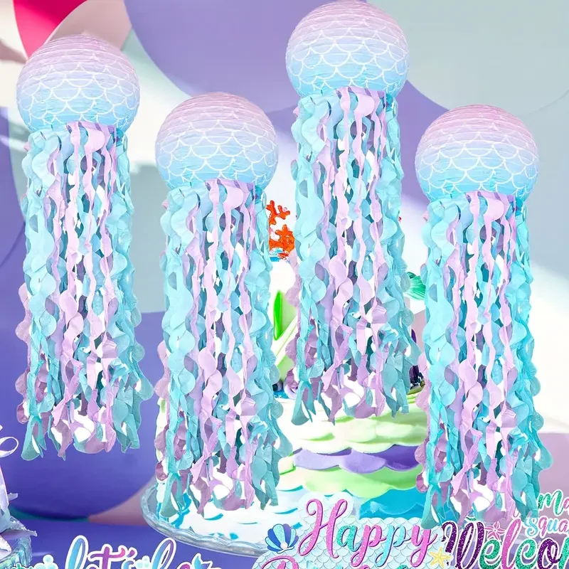 1/6pcs Mermaid Jellyfish Paper Lanterns For Mermaid Theme Party Under The Sea Ocean Birthday Wedding Party Decorations