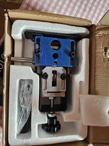 Good quality and works well. Fixed to my bench. Easy to assemble. Can attach a drill to it. Easy to adjust. Not soft flimbsy steel. Recieved within 2 weeks.