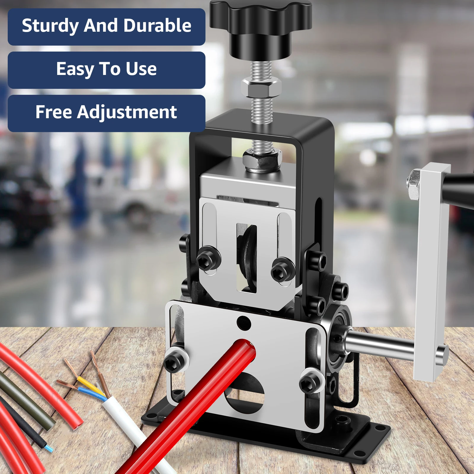 [Lightweight and Portable] The wire peeler machine is lightweight and has mounting holes on the base. And you can fix it on the workbench with screws, or take it to work anywhere as a portable tool.