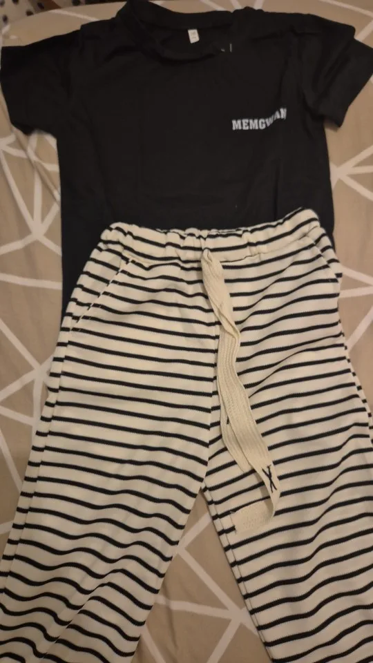 10 reviews for 1-8 Years Summer Girls Clothing Set Comfortable Letter T-shirt+Stripe Loose Fitting Pants 2Pcs Suit For Kids Children Outfit