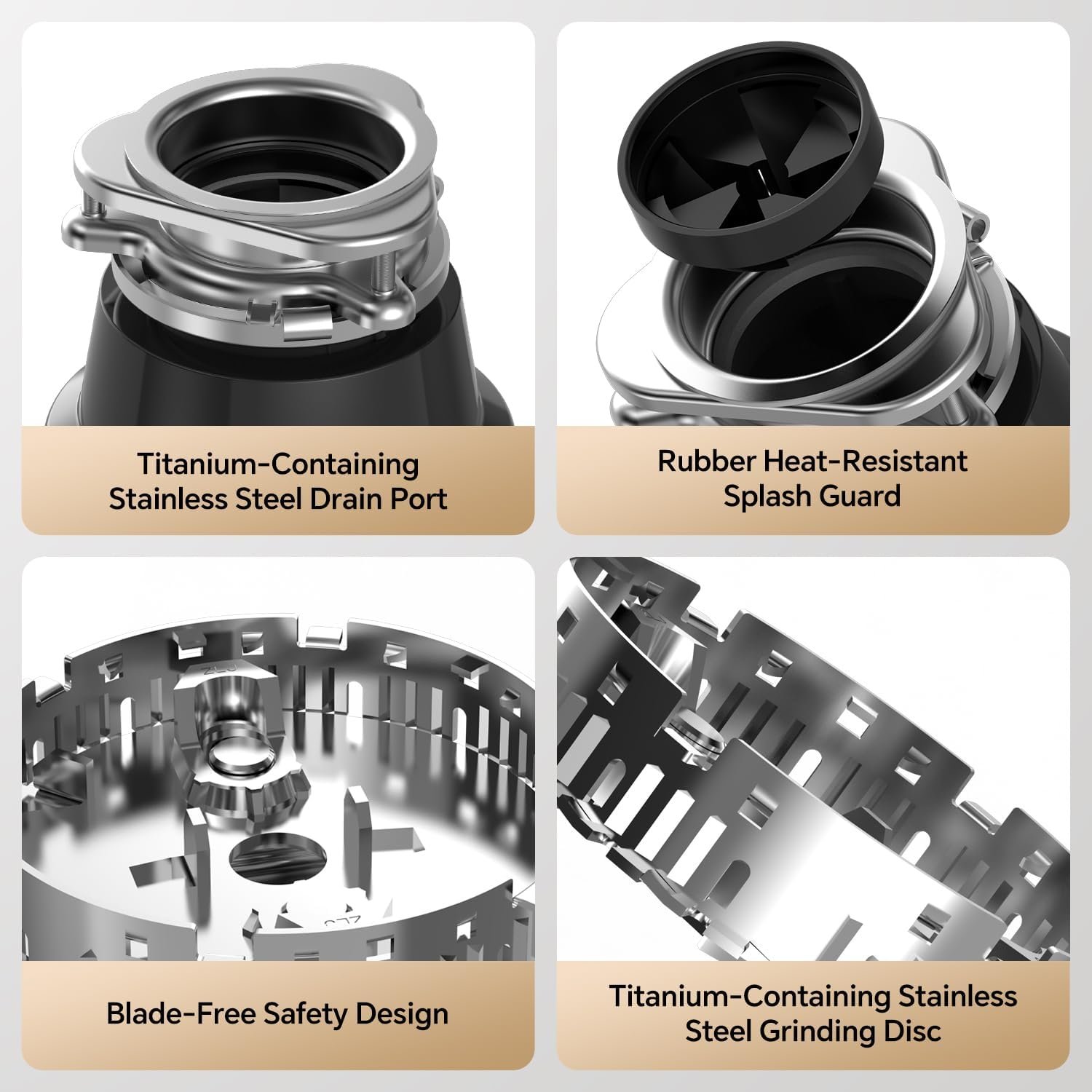 Ultra-Fine Grinding Below 2.4mm: DeepCut Ultra dual-layer 7-stage grinding system reduces 80% of particles to <2.4mm; anti-clog design ensures smooth drainage for most plumbing systems.