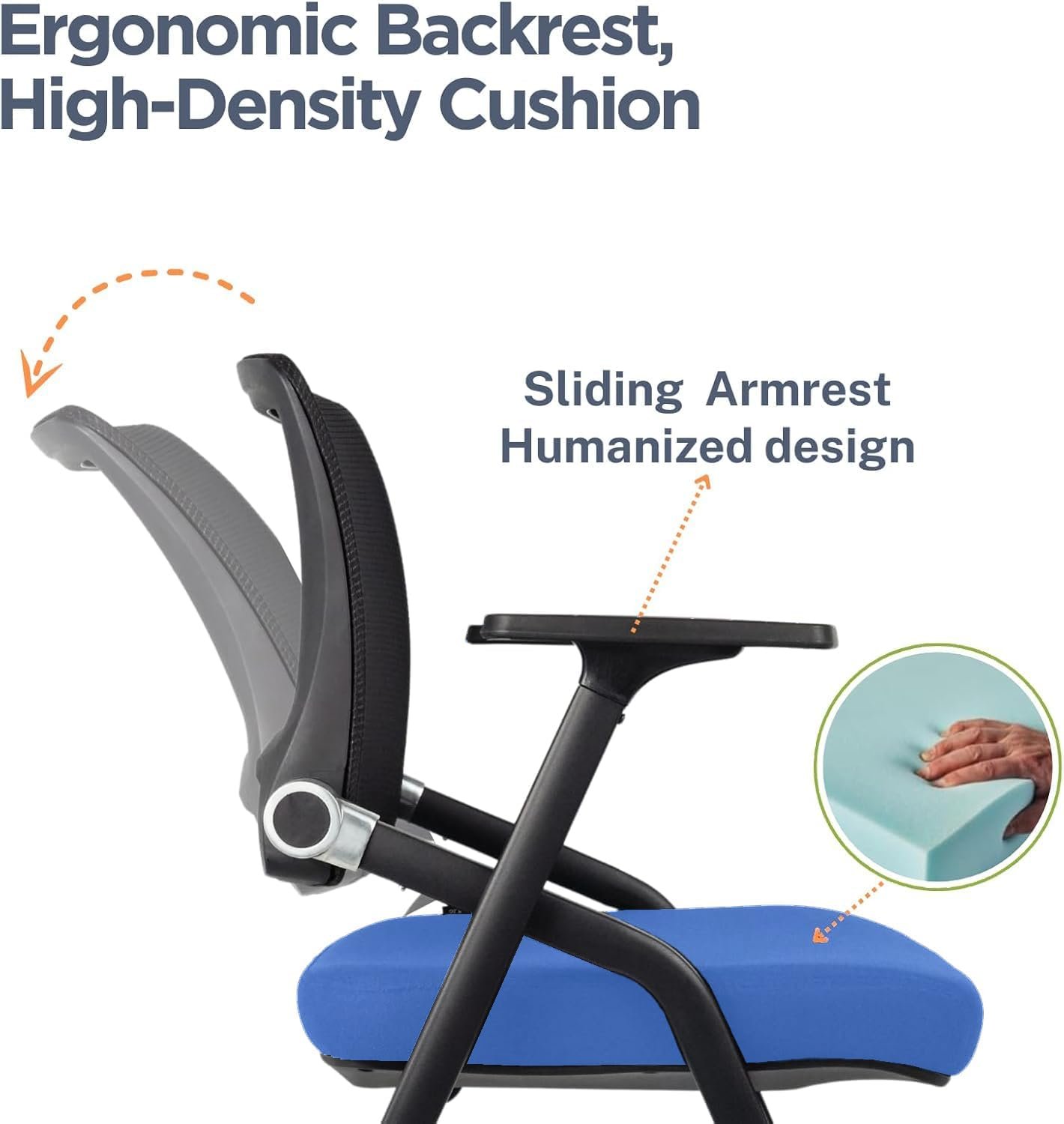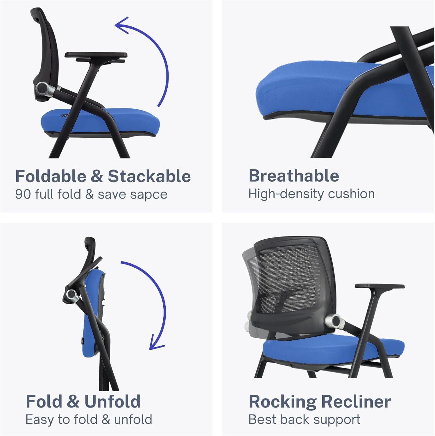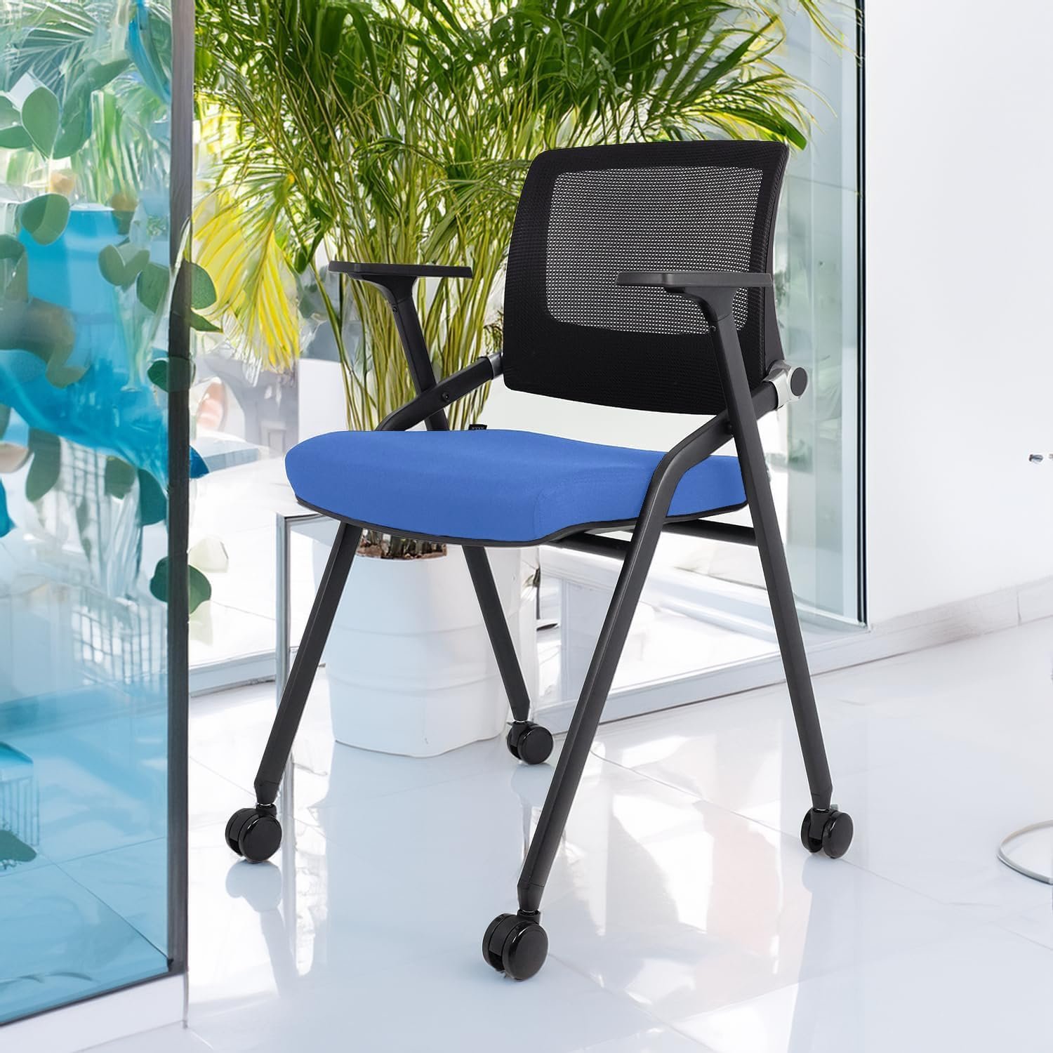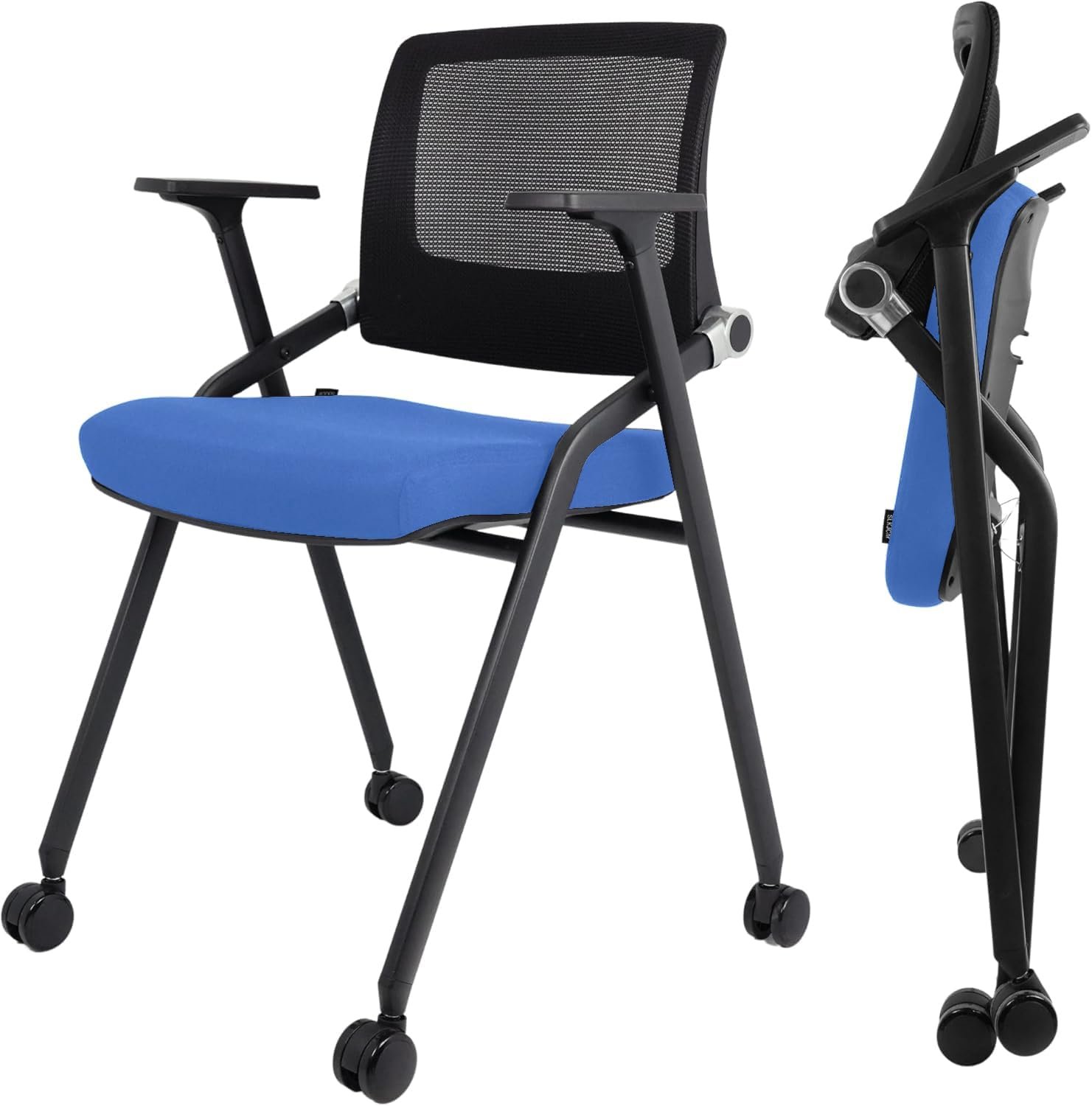 1 Pack Foldable Office Chairs with Wheels, Mesh Back, Arms and Portable – Folding Office Chairs for Conference Room Chair, Office Guest & Reception & Meeting Chair – (Blue) 300 lbs.