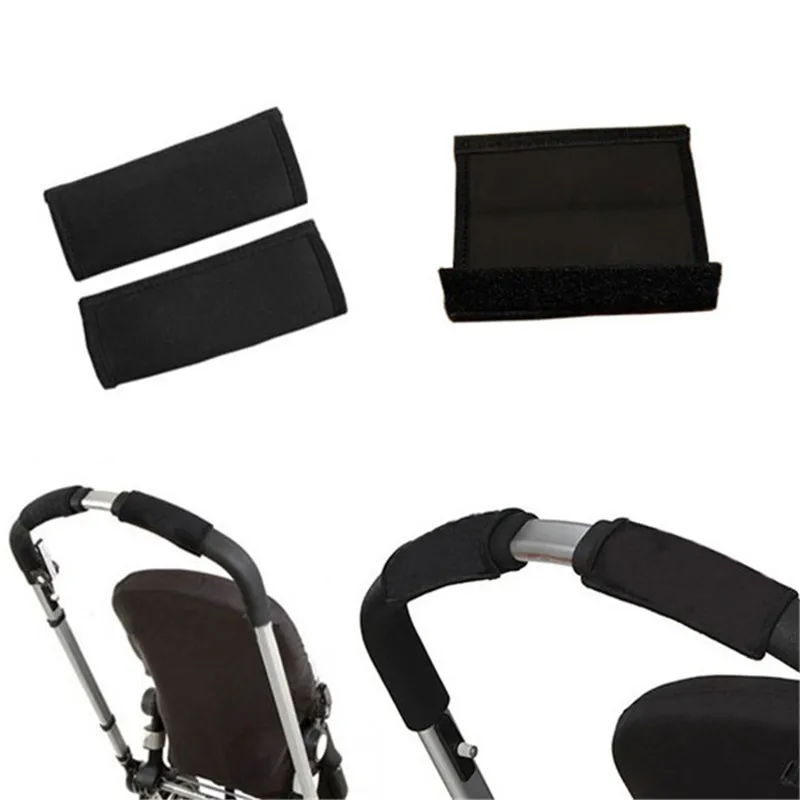 1 Pair Solid New Baby Black Pram Stroller Carriage Front Handle Neoprene Magic Tape Bumper Bar Cover Bebek Arabasi