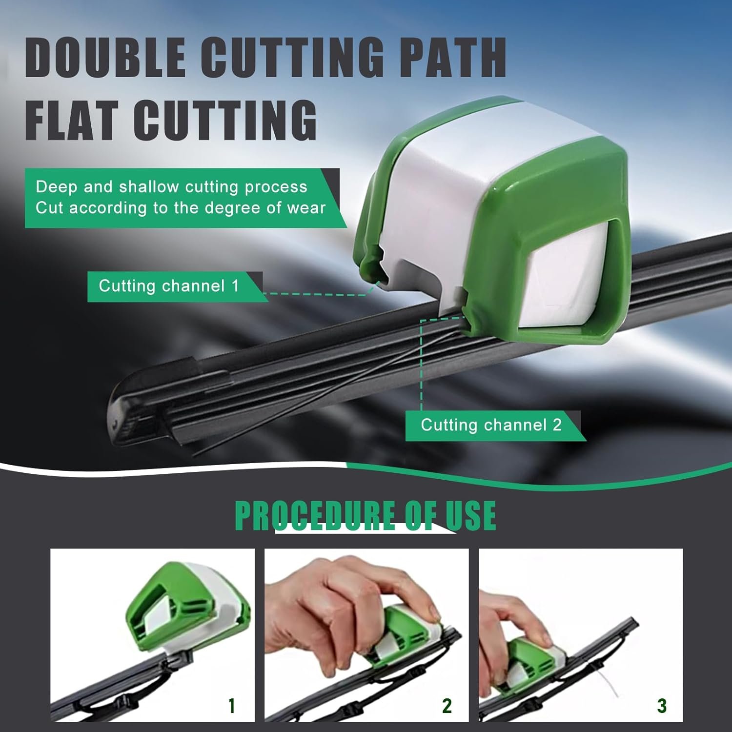 How to Use: First fold the wiper and clean it thoroughly with a wet sponge, select the guide and push it to the wiper lip, pay attention to the direction of the arrow. Using even pressure, pull the wiper restorer over the entire wiper lip. After cutting, just clean it again with a damp sponge.
