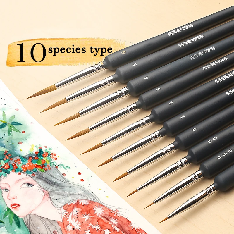 1 PC watercolor Hook line pen gouache soft weasel hair outline painting brush hand-painted propylene miniature detail detail art