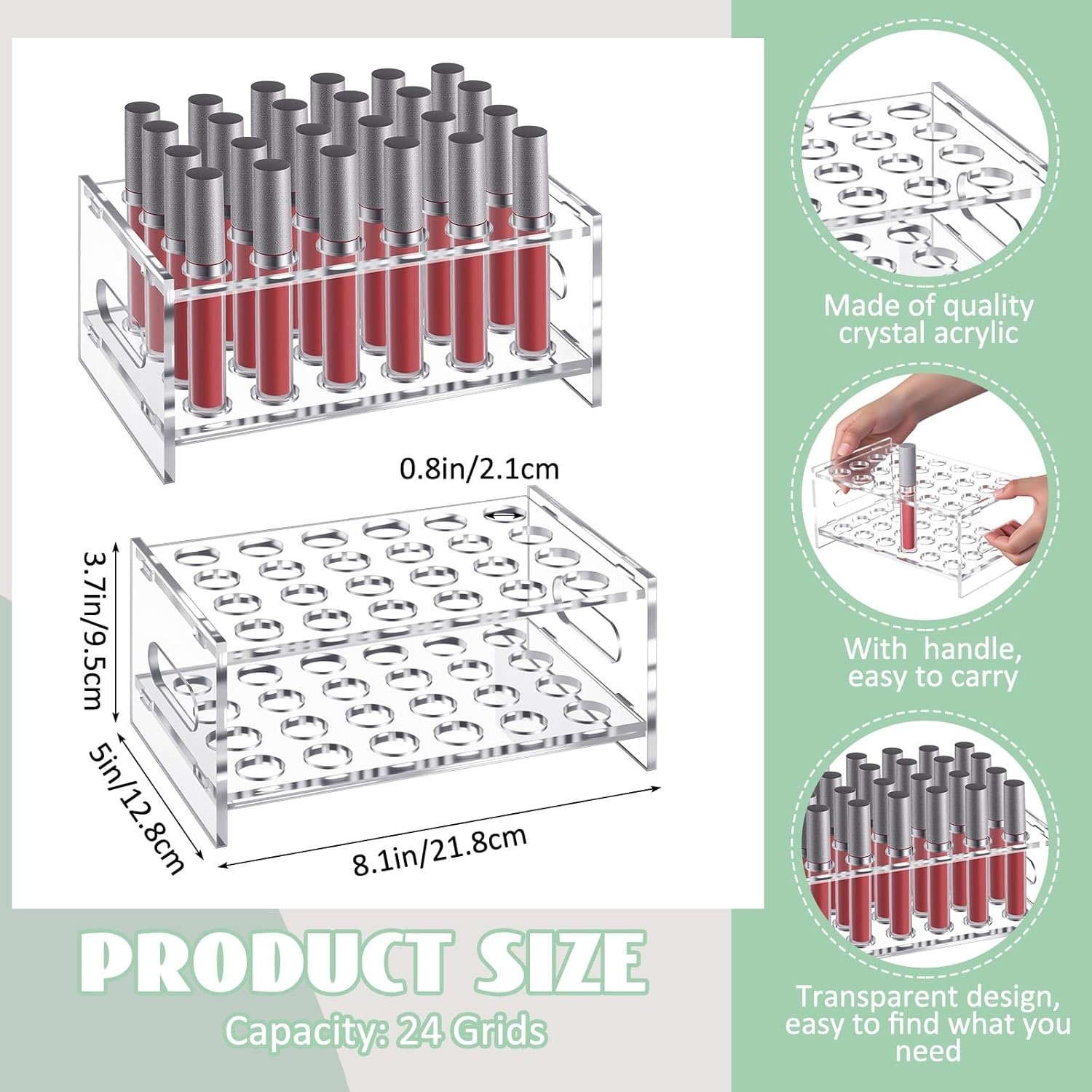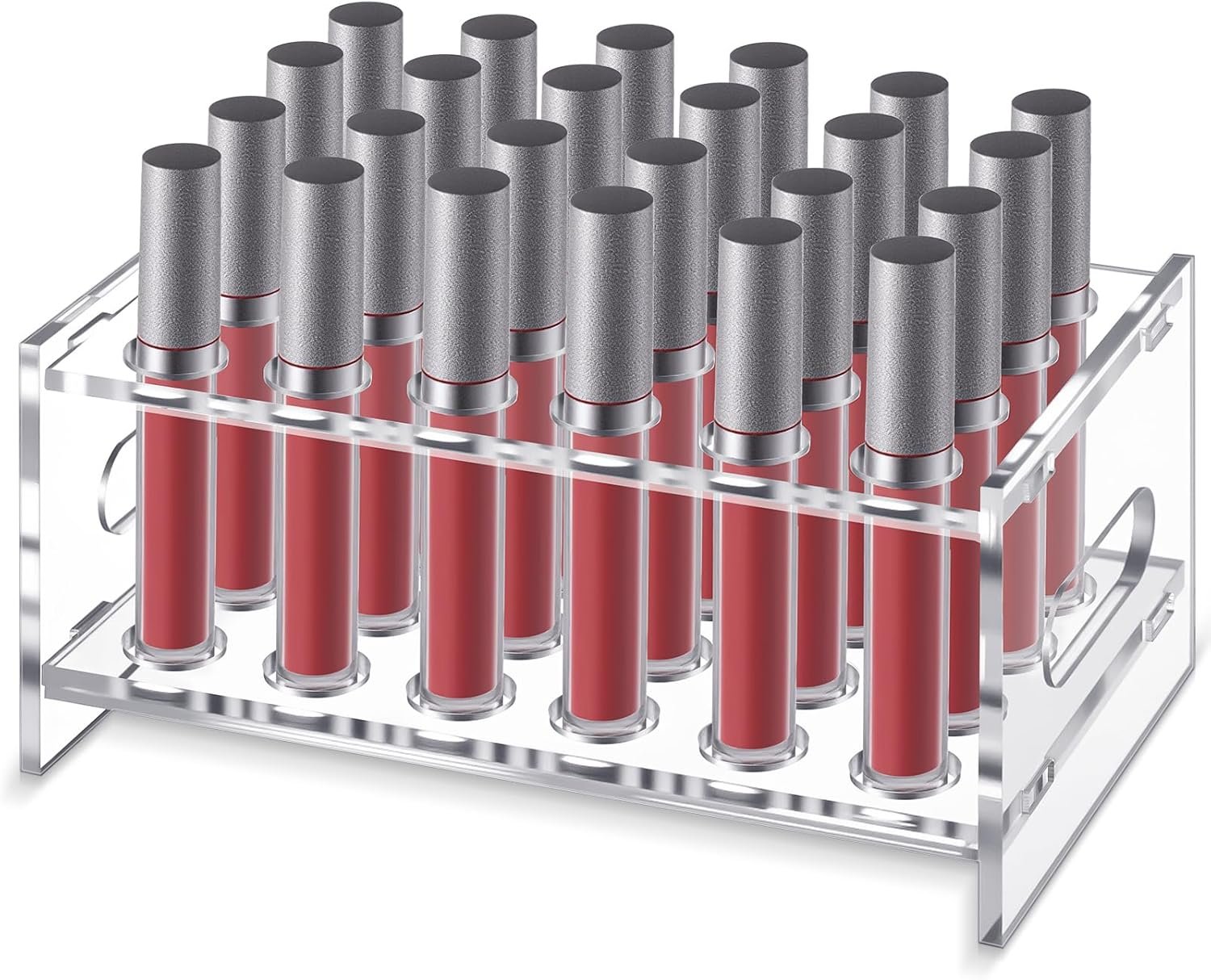 1 Pcs Acrylic Rollerball Perfume Organizer with Handle, 24 Spaces Clear Lipgloss Perfume Storage Holder Beauty Scent Holder, Makeup Lipstick Display Case