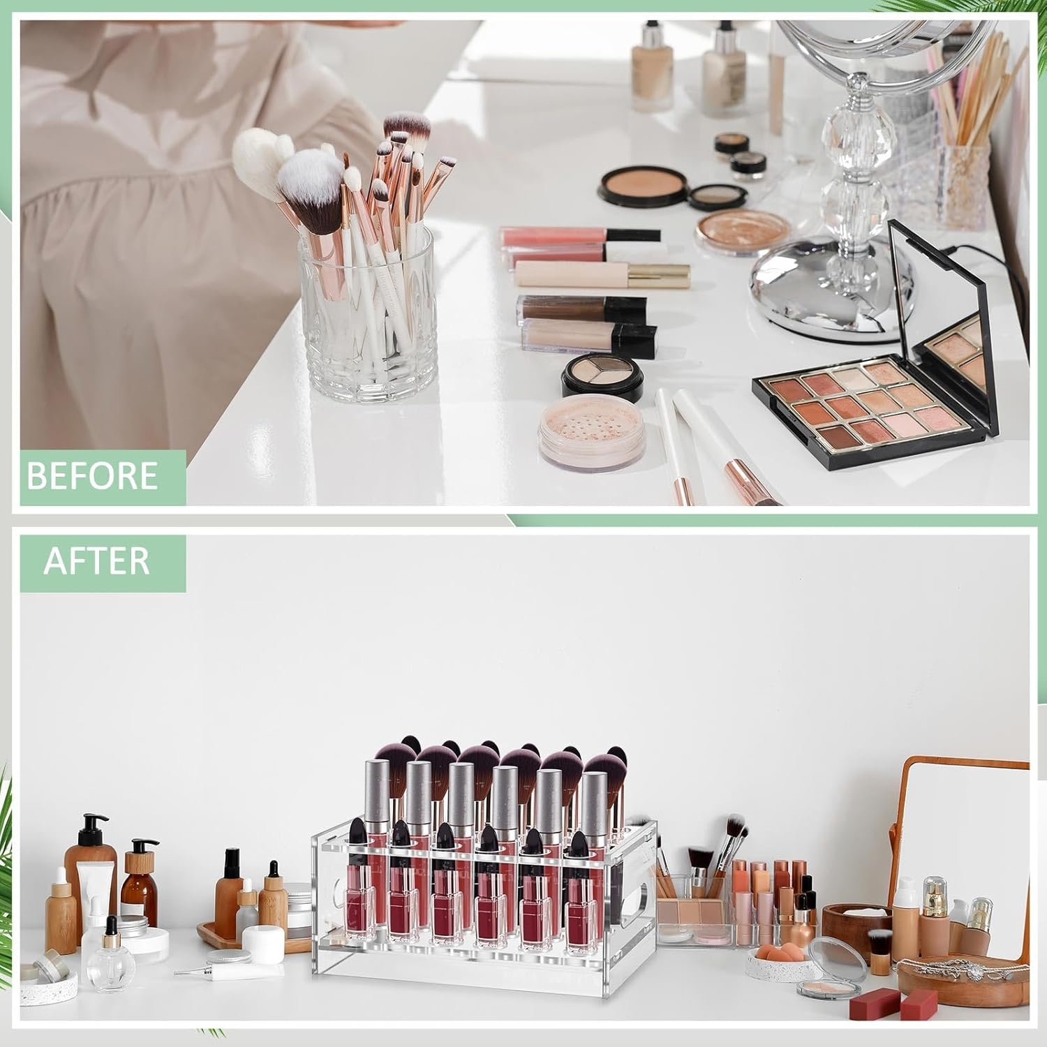 Multiple Uses: the acrylic roller perfume storage box is very suitable for organizing roller perfumes, lipsticks, lip glosses, makeup brushes, mascara, etc. It is also a suitable gift for makeup lovers and office white-collar workers; It can be placed in bedrooms, living rooms, bathrooms, offices and other places to easily organize messy countertops and make everything clean and tidy