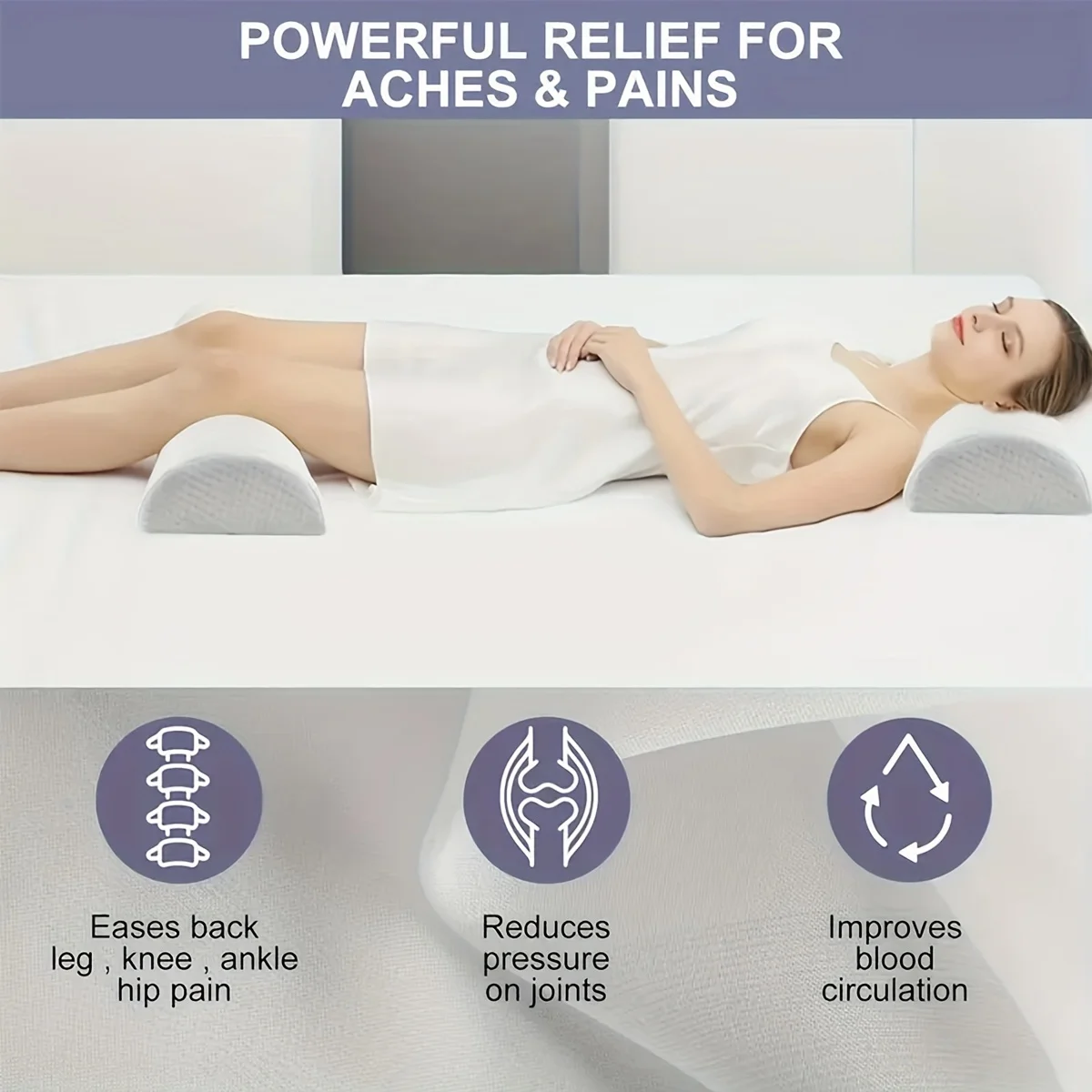 1 piece leg, knee, lower back pillow, crescent shape viscoelastic foam pillow, half roll pillow, lower back relaxation, very sui