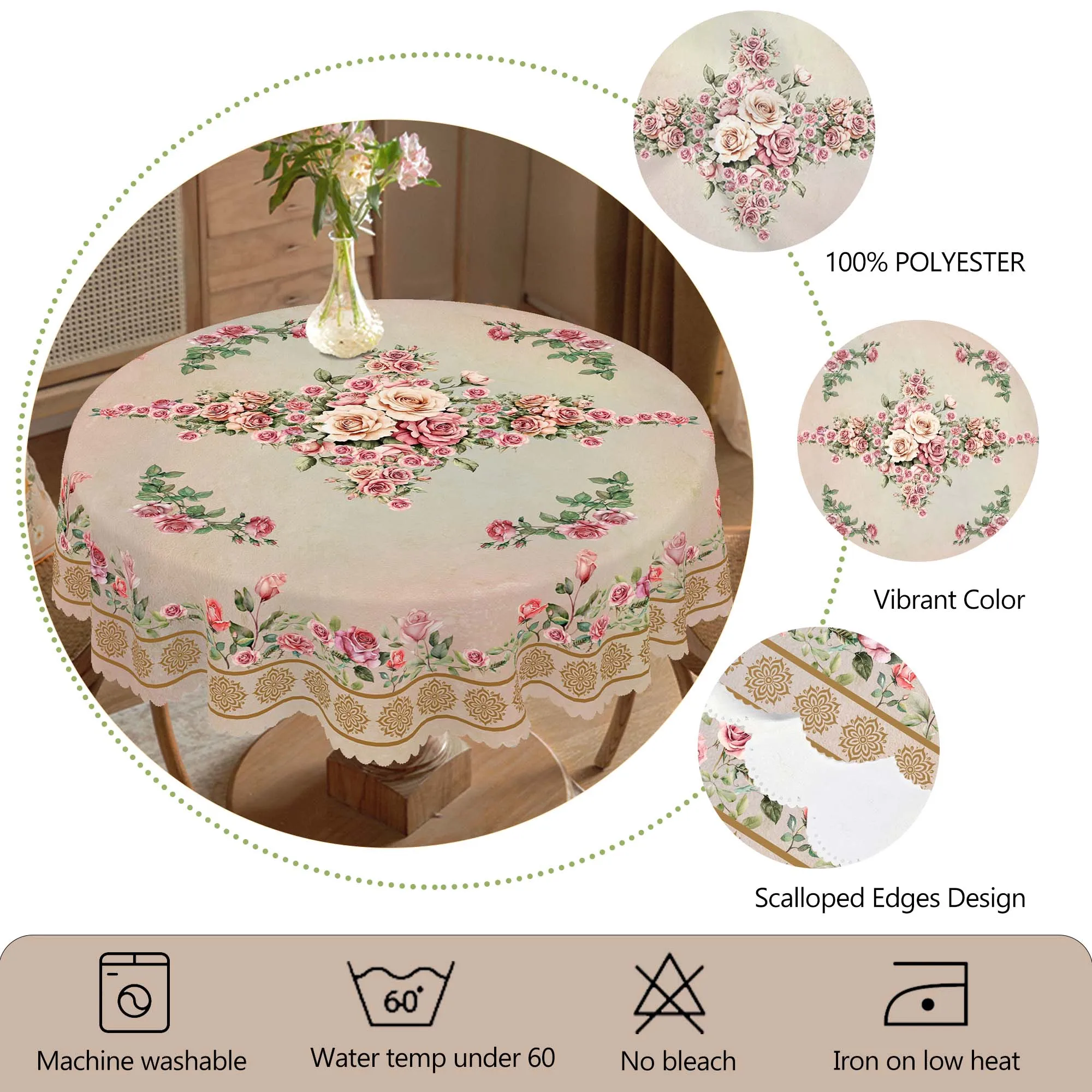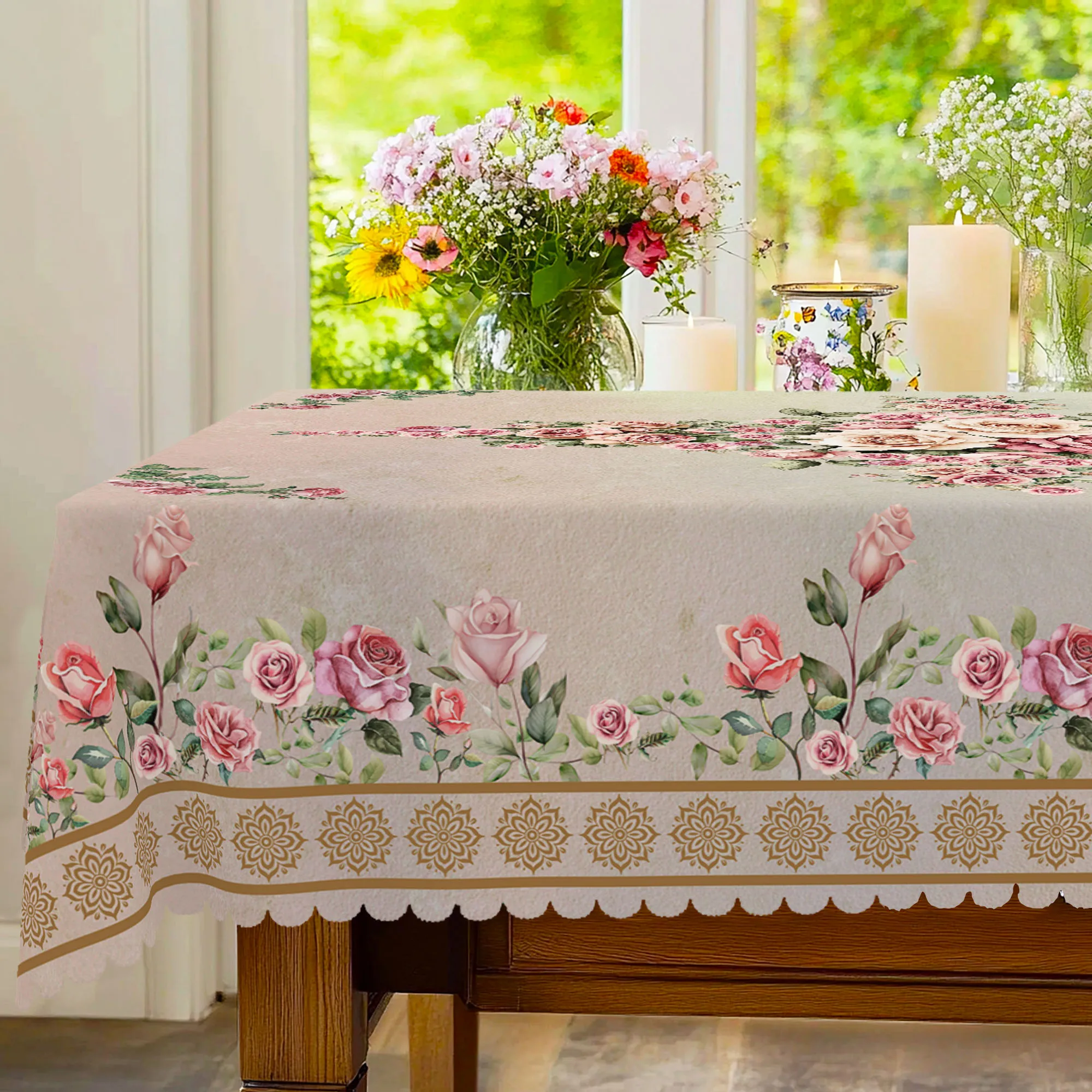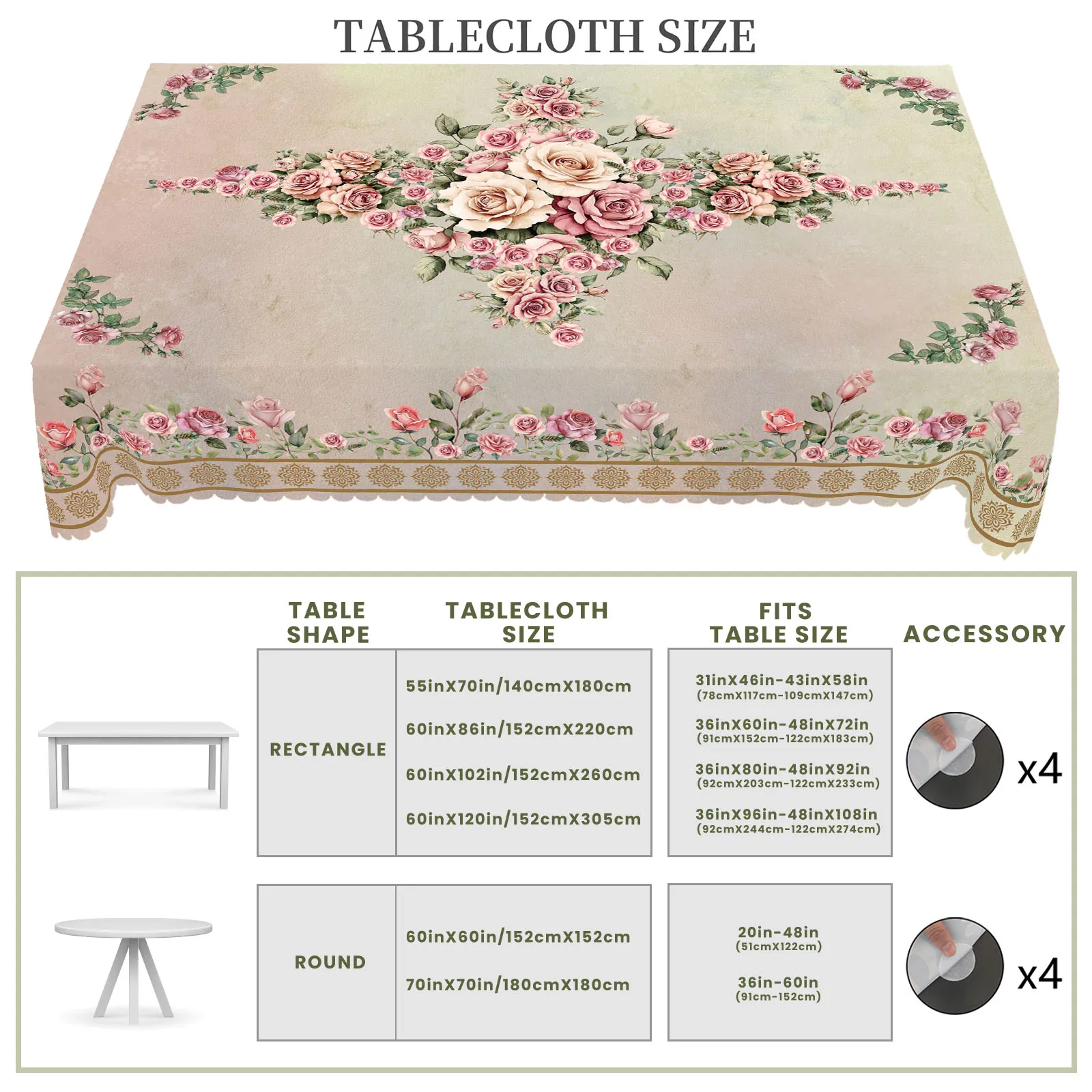 1 Piece of Retro Floral Tablecloth for Spring and Summer, Made of Elegant and Luxurious French Style, Retro Rose and Pink Flower Design, Ideal for Spring and Summer Decoration, Indoor/Outdoor Party and Home Decoration, Table Decoration, Banquet Decoration, Kitchen Decoration, Suitable for Valentine’s Day, Mother’s Day, Easter, Weddings, Birthdays, Anniversary