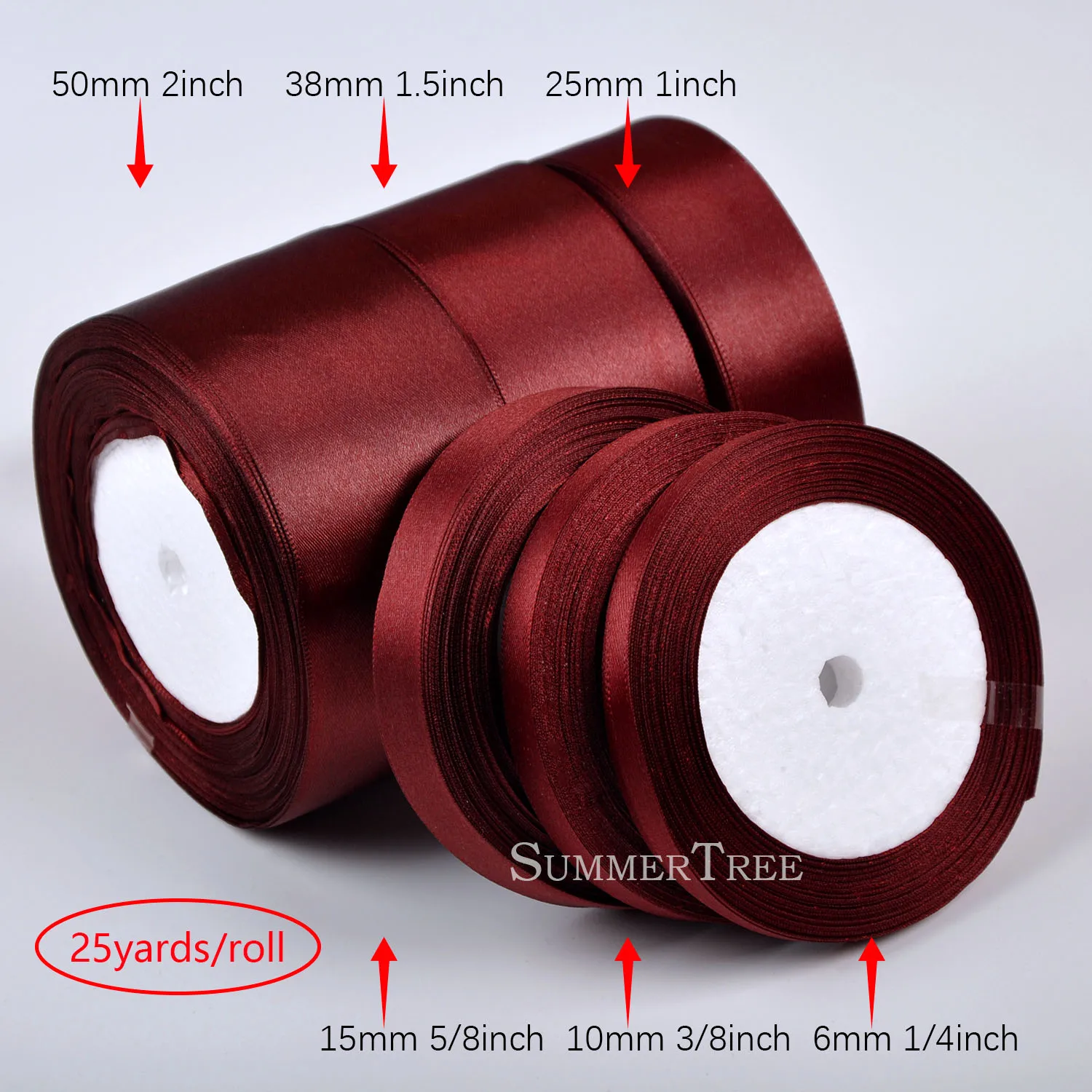 1 Roll Burgundy 25yards 6mm – 50mm Satin Ribbon Sash Gift Bow Handmade DIY Craft Wedding Party Supply Banquet Decoration