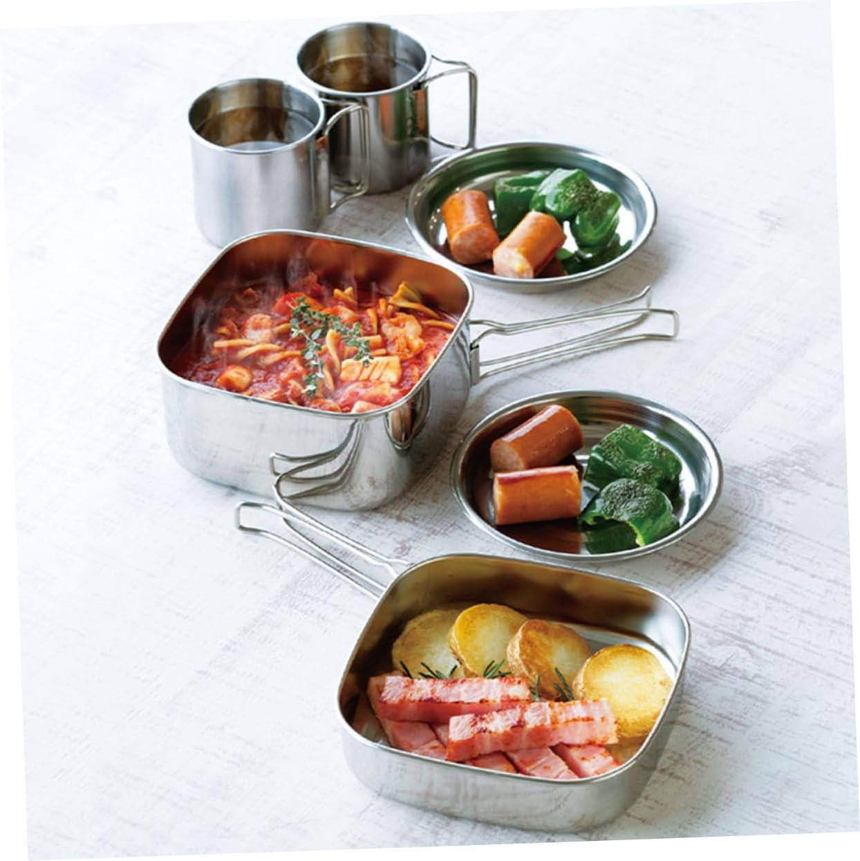 -Material:Stainless steel camping cookware