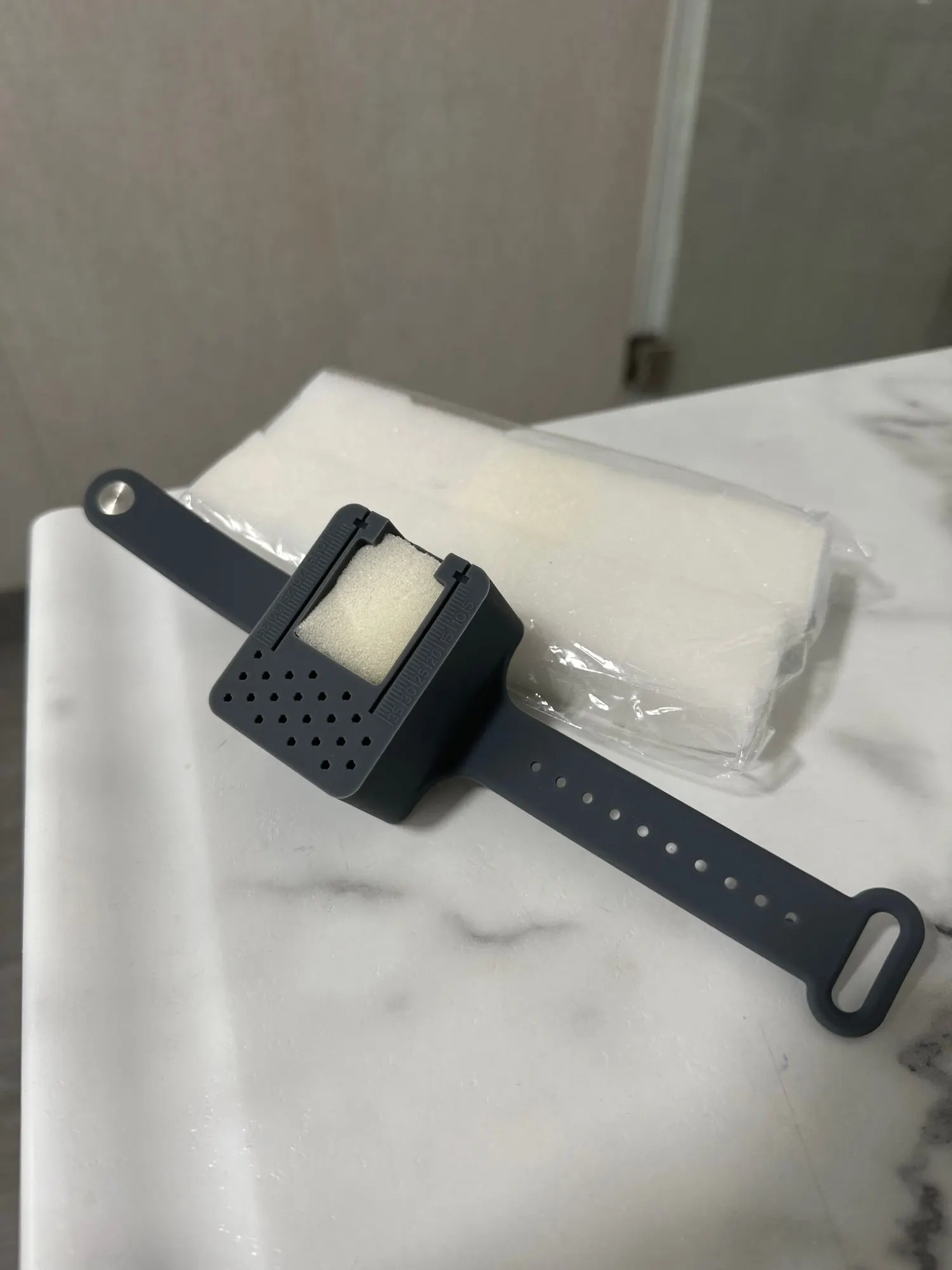 A very comfortable bracelet. The set includes replacement sponges.