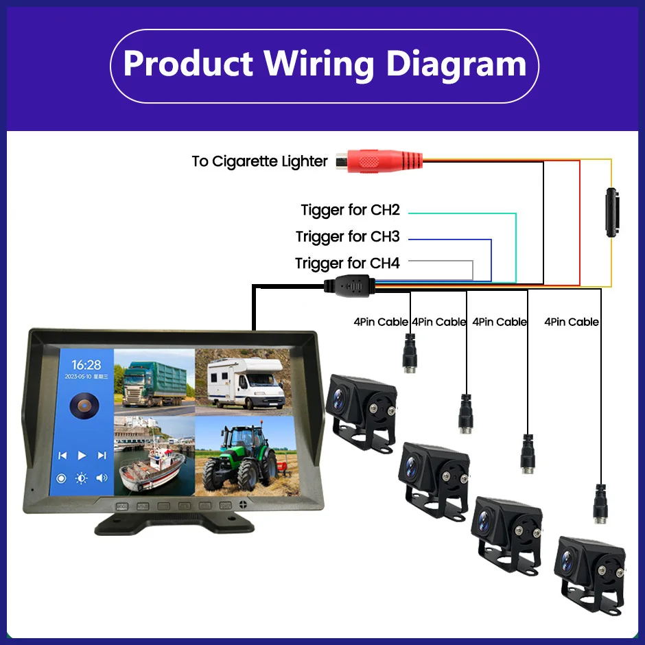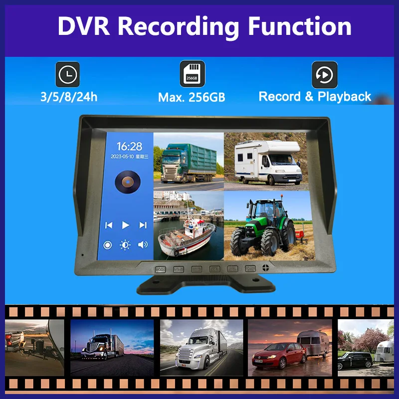 10.1″ 4CH Truck Backup Camera System Vehicle DVR Recorder with Night Vision AHD 1080P Camera for Truck/Bus/Vans