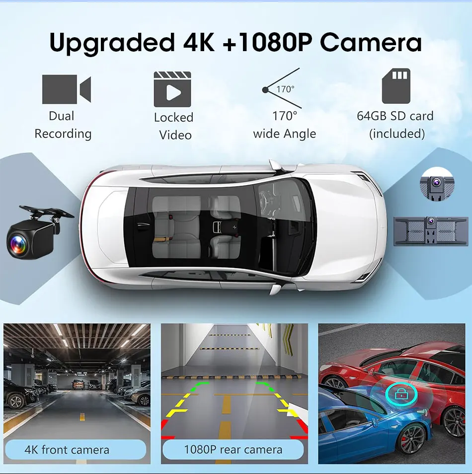 360 ° rotatable front camera, 4K DVR function, can be placed anywhere on the center console, making travel so simple.