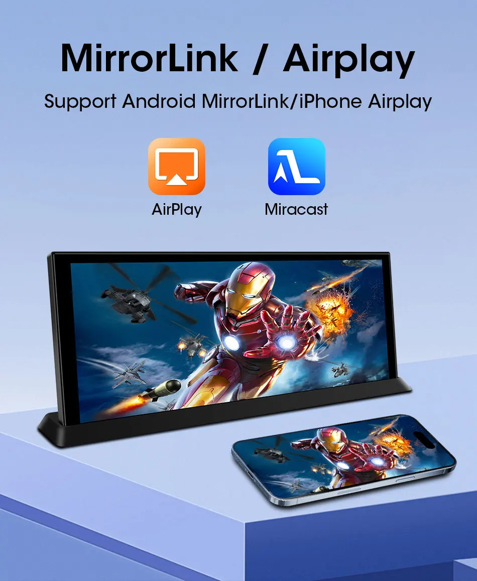 ã€Fit for 12V-32V Vehicles】The 11.26 inch car play screen fit for all different cars, campers, RVs, trucks, vans from 12V-32V. Upgrade carplay screen, IPS HD 1920*1080P, higher sensitivity, clearer and colorful display, provide you an excellent driving experience. The rectangular touch screen design can better reduce the obstruction of the line of sight.