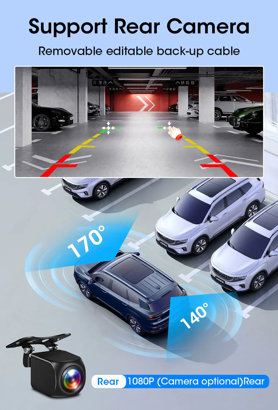 2. T356D is a 10.26-inch small screen without a front facing lens and does not support a rearview camera. Please do not purchase a rearview camera separately for T356D. T356D does not have DVR function and does not support rearview camera. Please do not purchase a rearview camera separately to avoid situations where it cannot be used.