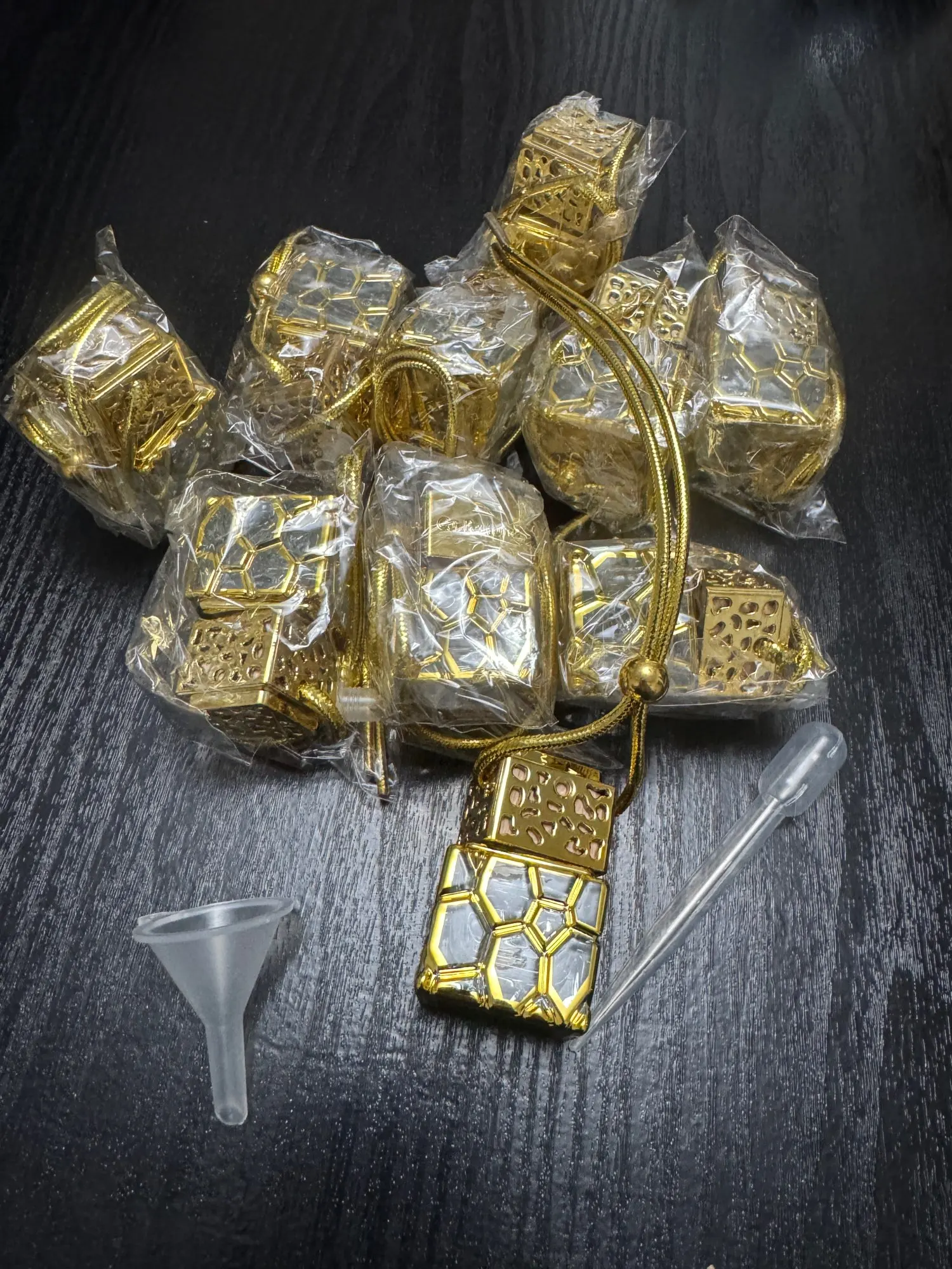 2 reviews for 10/30pcs 10ml Empty Car Perfume Bottle Aromatherapy Bottle Car Pendant Decoration Gold Glass Bottle Cosmetic Container