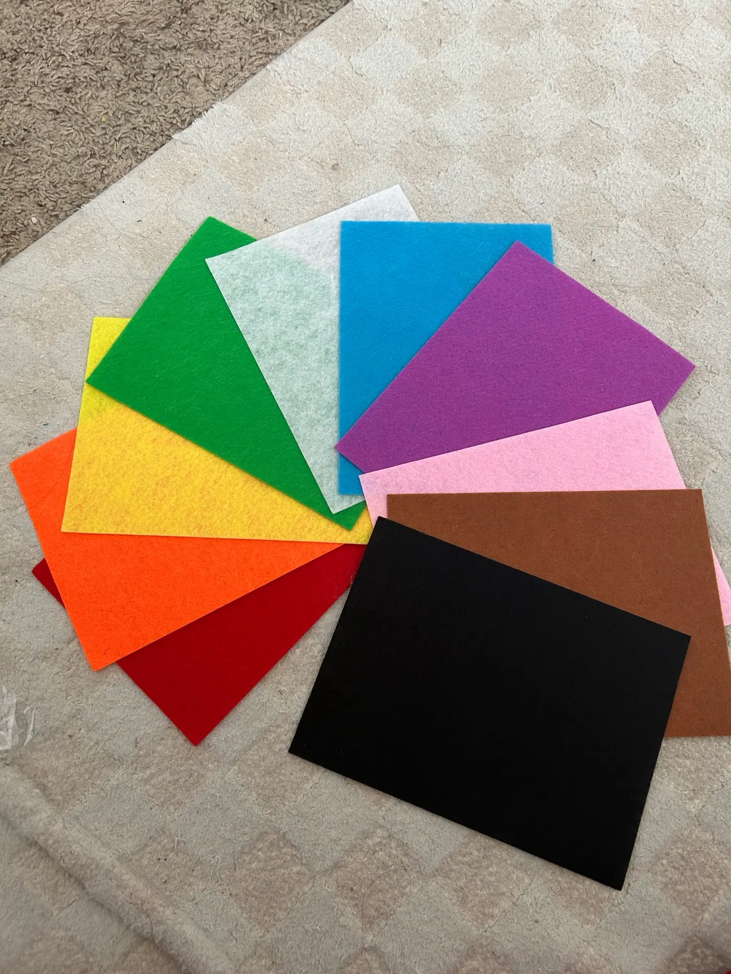 Color: Assorted colors, 10/20/40 different colors, 1pc of each color. Package includes 10/20/40pieces of felt sheets; Enough for DIY crafts