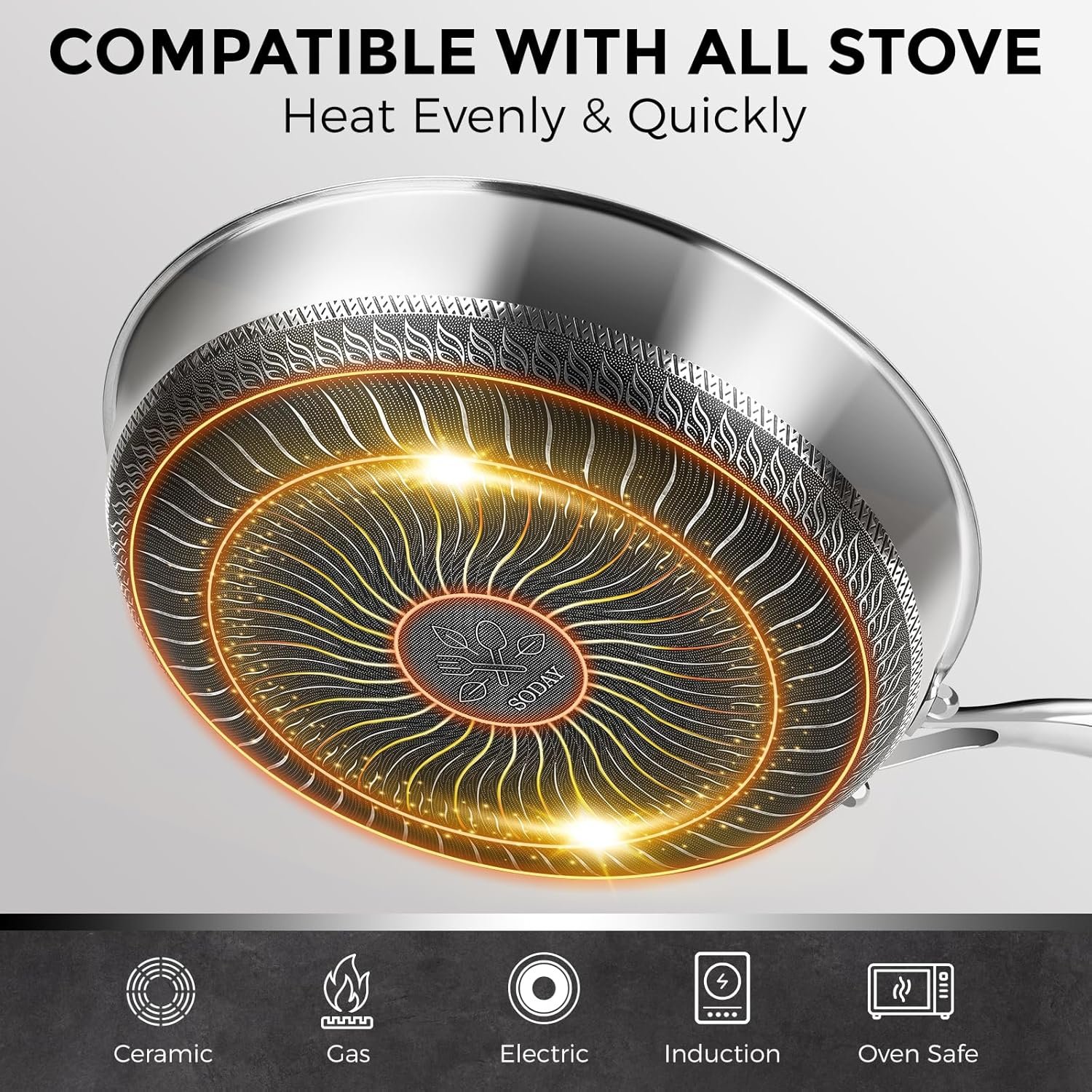 Hybrid Stainless Steel & Non-Stick: Combines durable stainless steel with non-stick convenience, ensuring easy food release and a long-lasting cooking surface