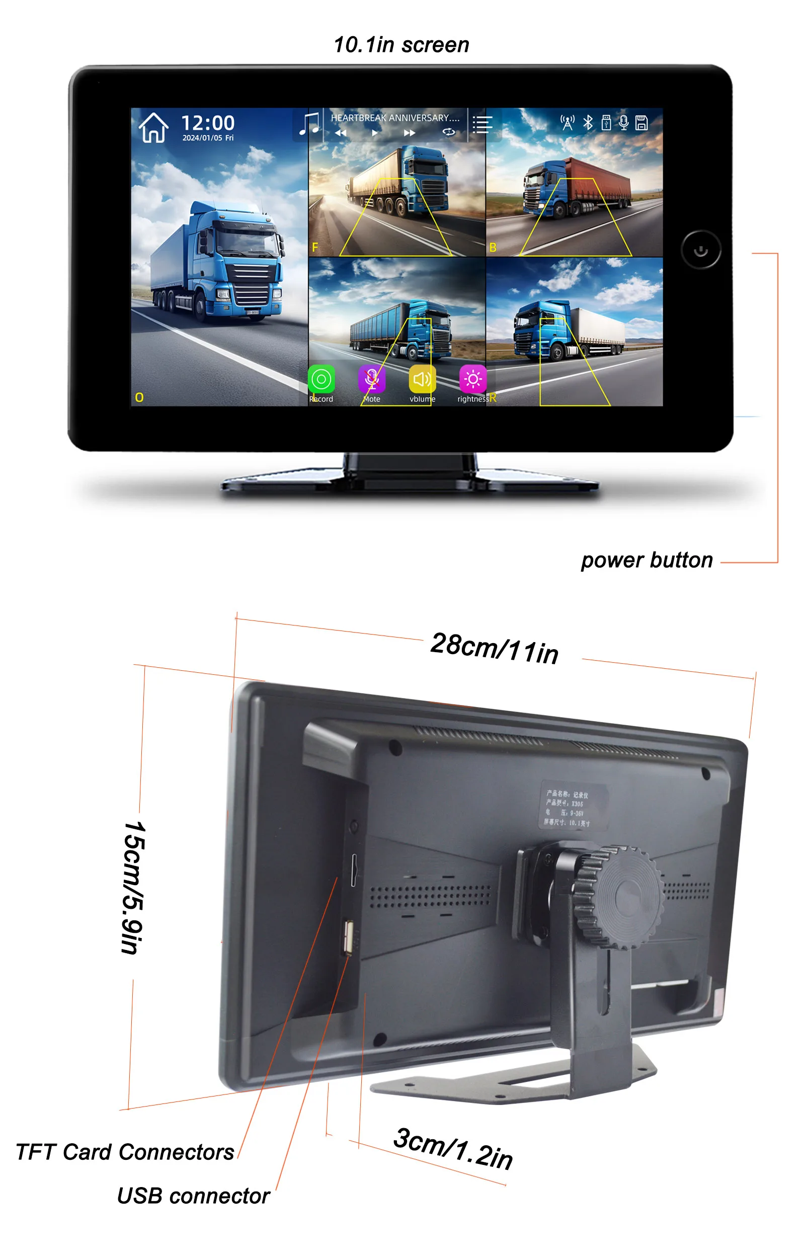 4. Suit for all 9~36V voltage vehicles such as car, bus, truck, RV, semi-trailer, Van and other heavy duty vehicles. Support DIY split screen as 1, 2, 3, 4 and 5 channels as you need.