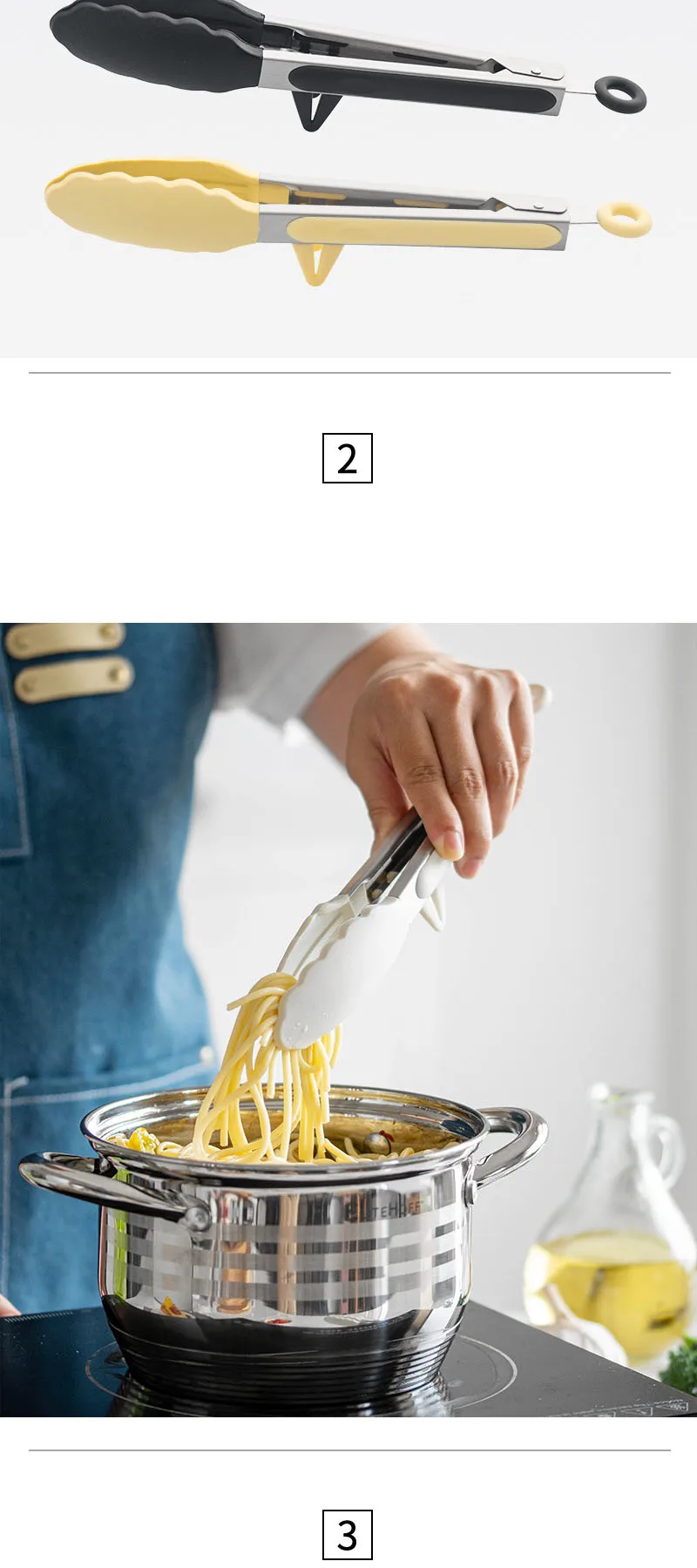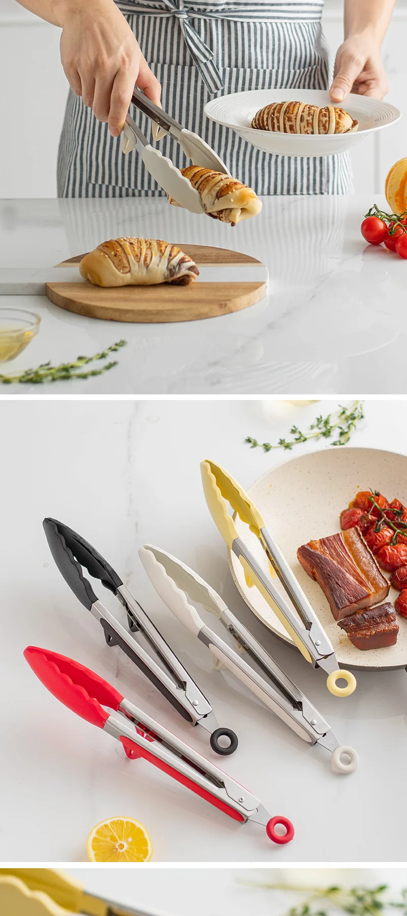 2 reviews for 10-inch Food Tong Silicone Non-Slip Cooking Clip Stainless Steel Kitchen Tongs Clamp Salad BBQ Tools Grill Kitchen Accessories