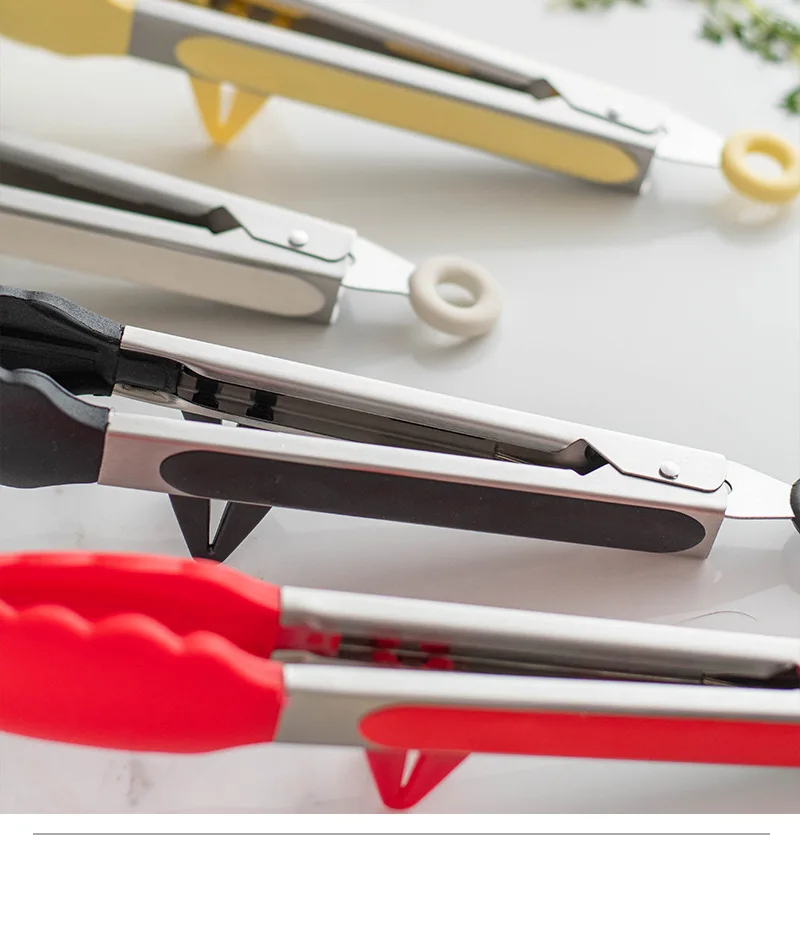 10-inch Food Tong Silicone Non-Slip Cooking Clip Stainless Steel Kitchen Tongs Clamp Salad BBQ Tools Grill Kitchen Accessories