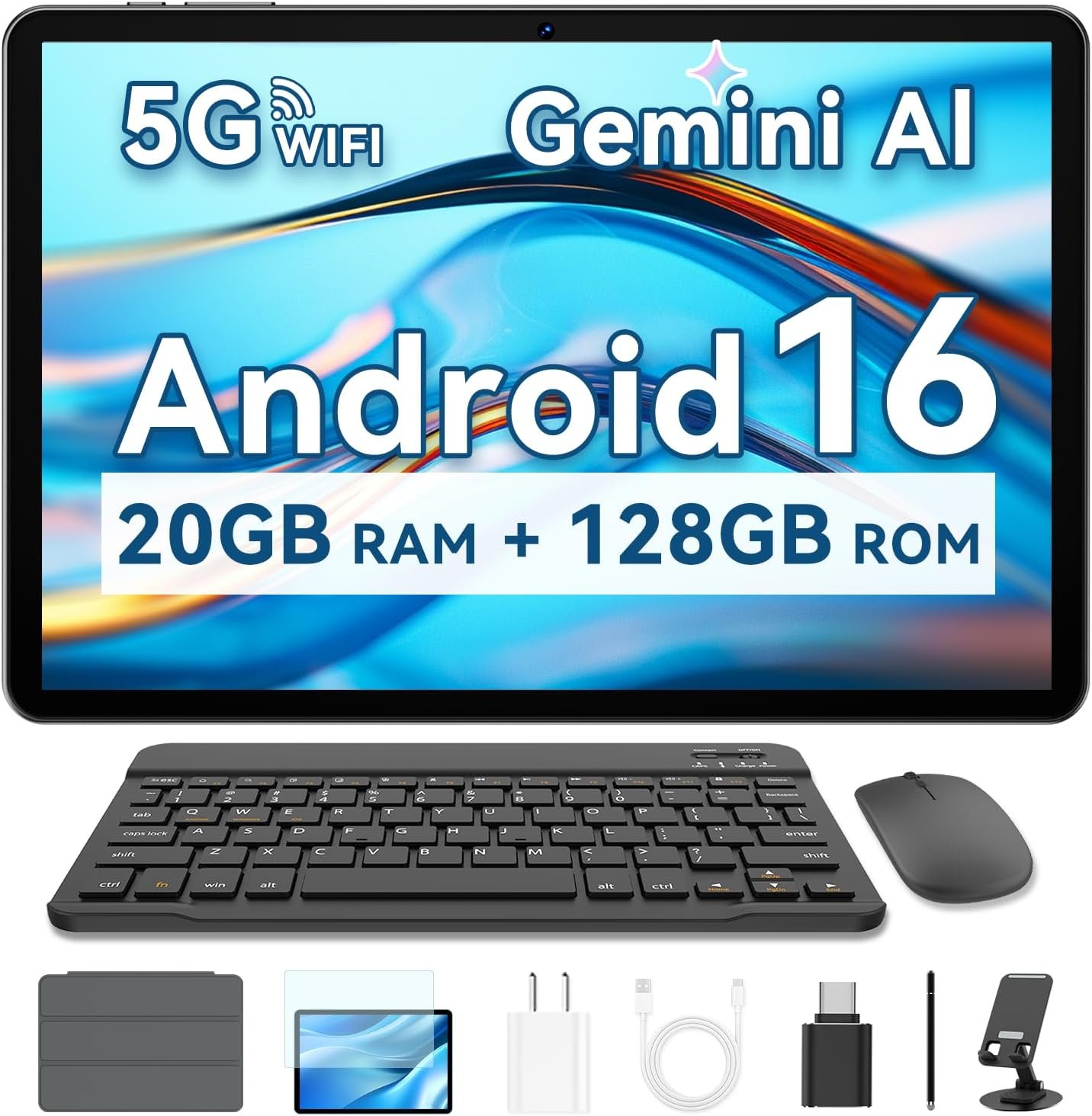 Android 16 Tablet With Keyboard Mouse Protective Case Convertible 9in1 Design+ Gifts Box For Kids Adults – Android tablet runs on android 16, Seamlessly switch between tablet and laptop modes with the Bluetooth keyboard, wireless mouse, foldable case. Whether you’re taking notes in class, drafting emails, or streaming shows, the keyboard with a pen turns your 10.1″ tablet into a full-powered notebook. protective case with magnetic bracket, opening the cover automatically wakes the tablet