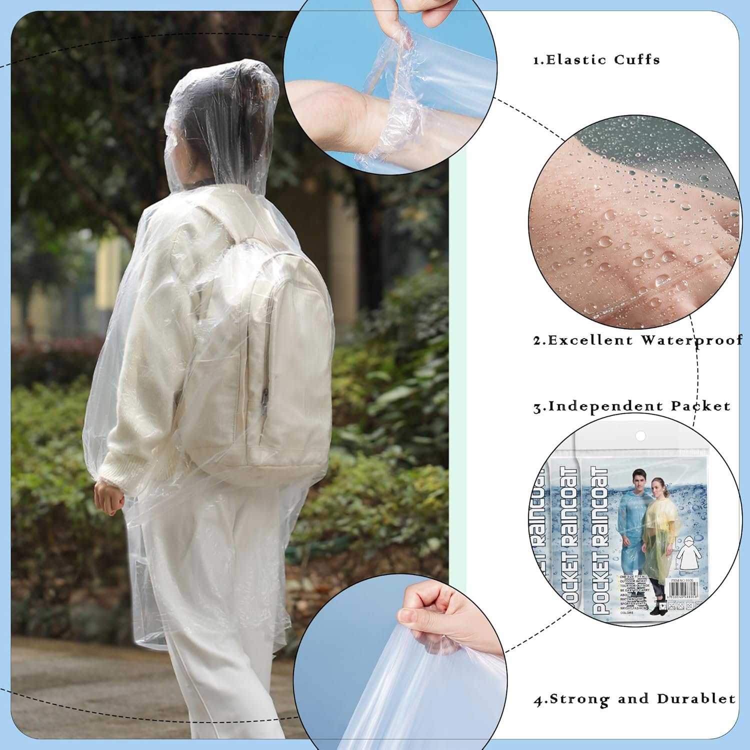 Compact & Portable Convenience: The Protraze family pack includes premium, lightweight, clear ponchos with hoods, each individually sealed in a compact, card-sized package. This space-saving design makes them easy to carry in your pocket, purse, or backpack—perfect for staying prepared during sudden downpours while on the go.