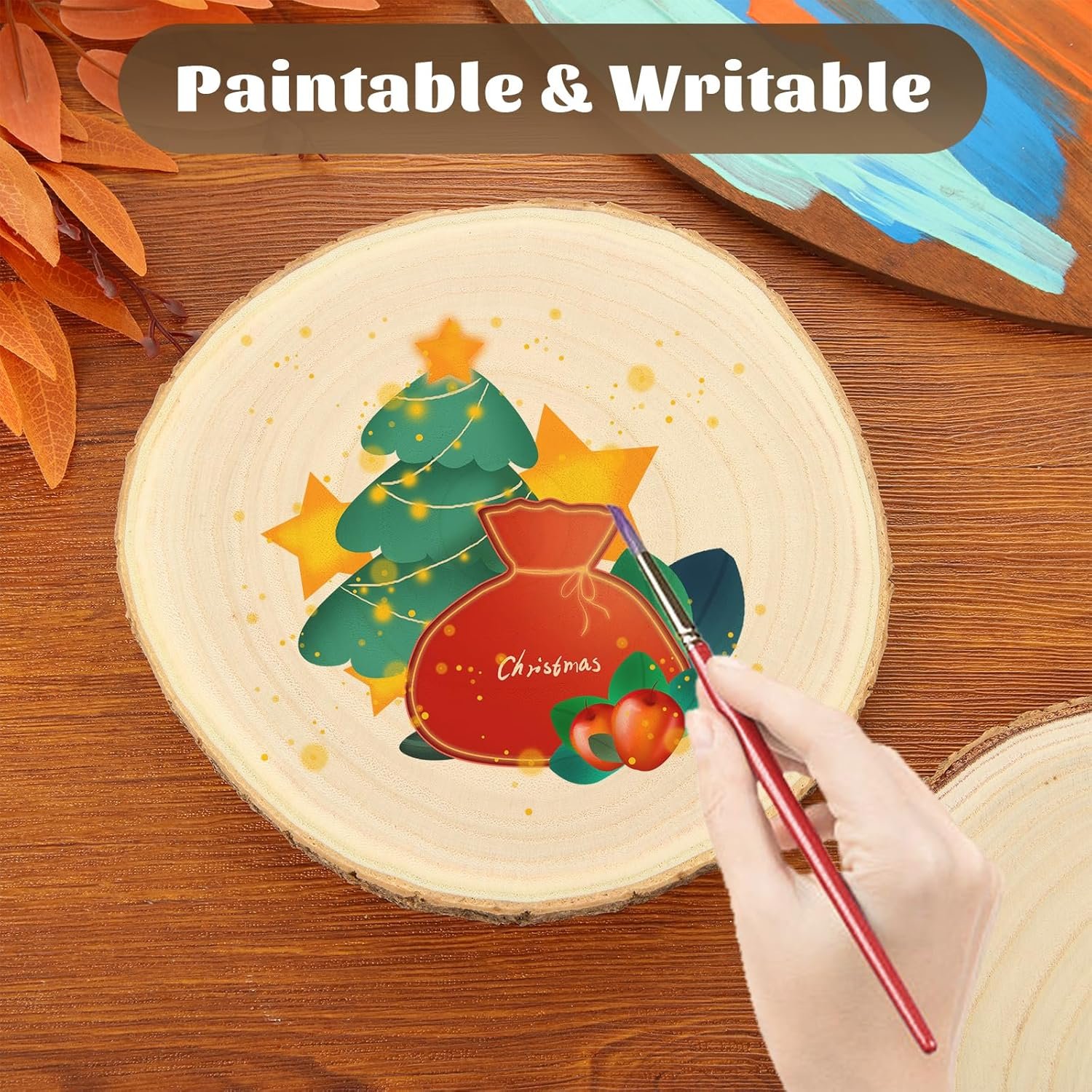 WIDE APPLICATION: Unleash your artistic vision on these unfinished wood slices. The tree bark wooden circles are perfect for any DIY project, such as paintings, wood burning, Christmas ornaments, gift tags, coasters, backdrop decorations, wedding decorations, photo props, wall art and more