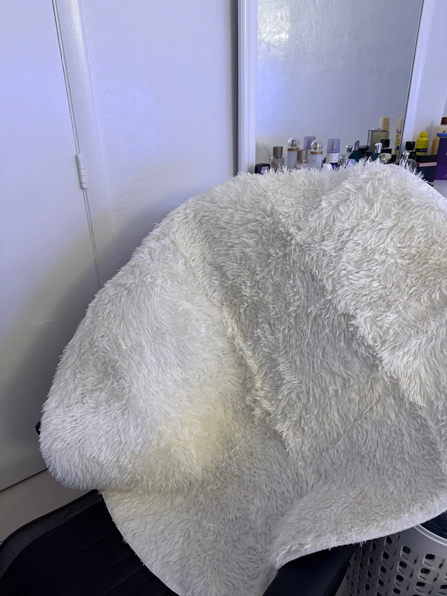 It’s not as fluffy as in the photo, but for now it doesn’t shed hair and is very pretty.
