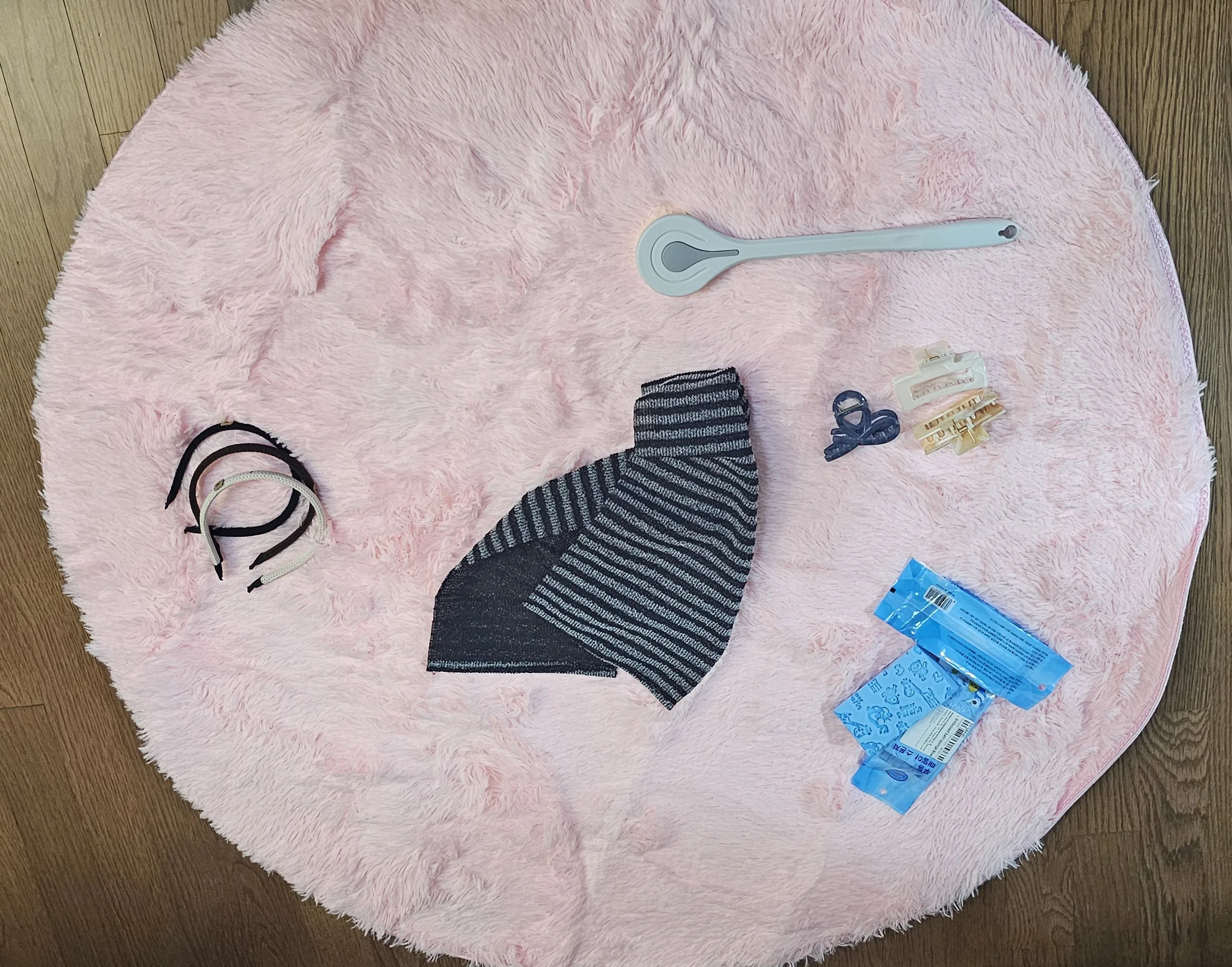 I am using a 1500 won round mat with short hair, but I bought it for a change of mood. It has long hair with moderate density, anti-slip backing, and is lightweight.