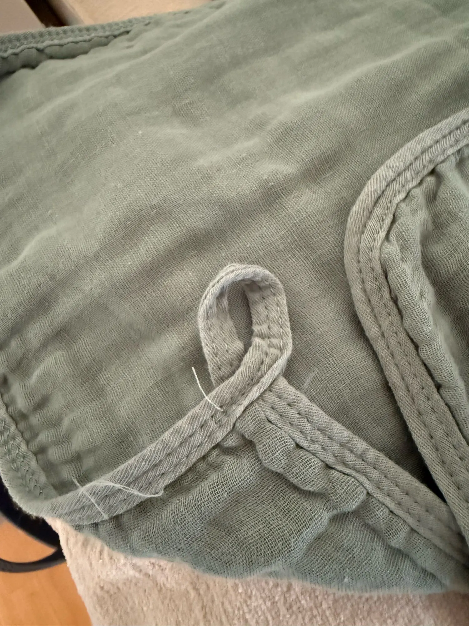 As described. No funny smell. Large burp clothes with a loop on one corner so you have hang it. Great quality for price point