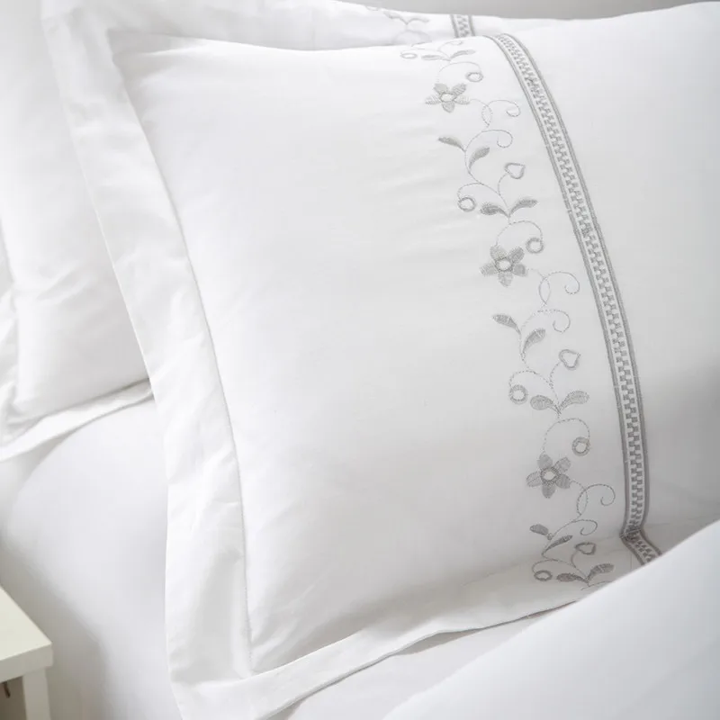 100% Cotton White Embroidered Bedding sets 4/6Pieces White Hotel Bedsheet set Duvet cover Pillow shams Double King Queen size