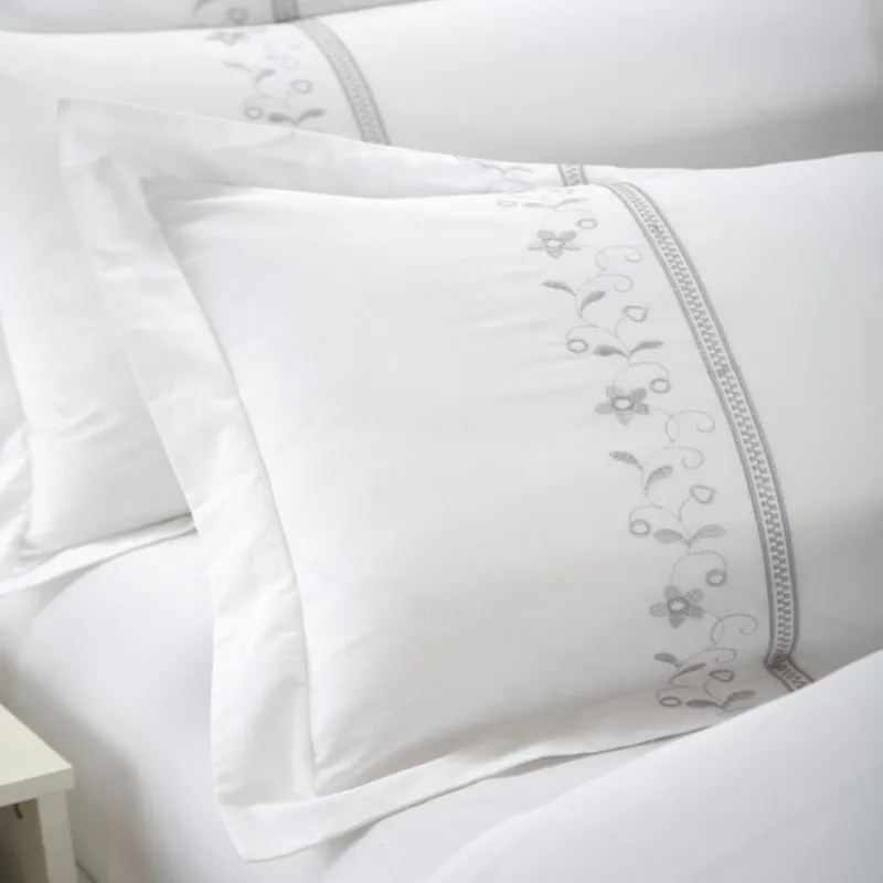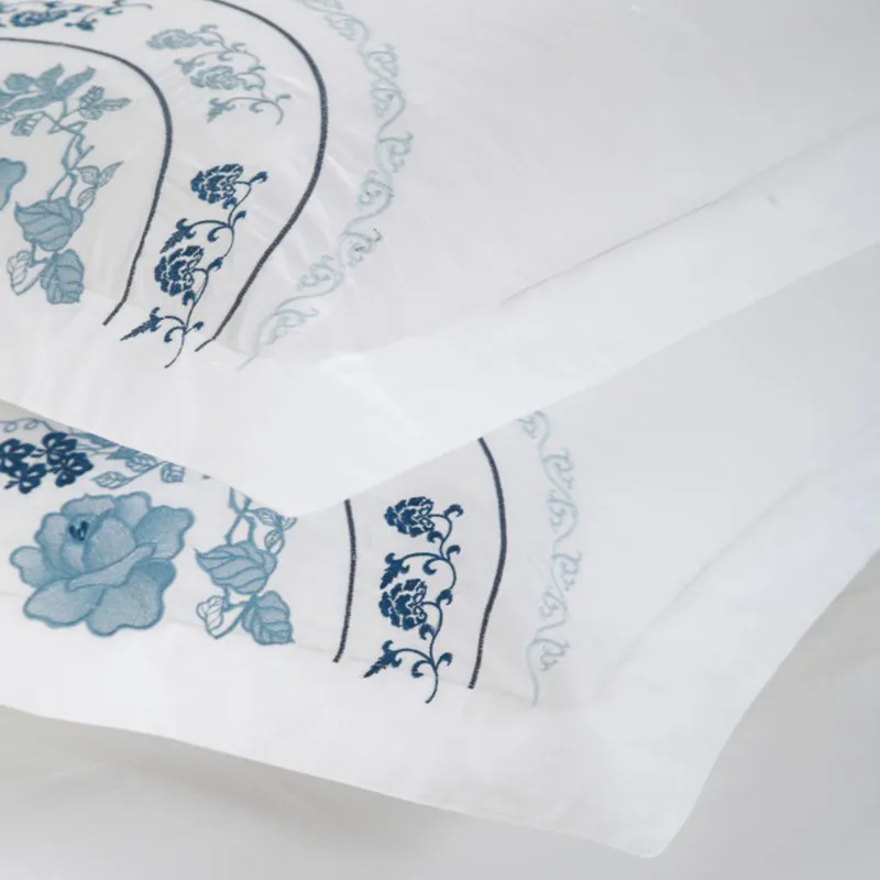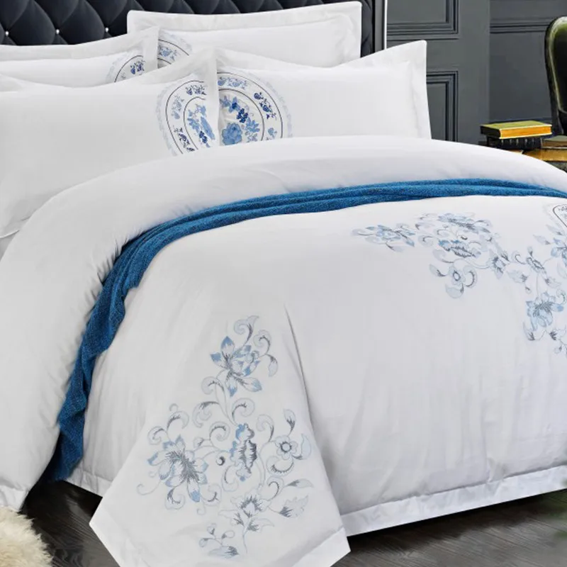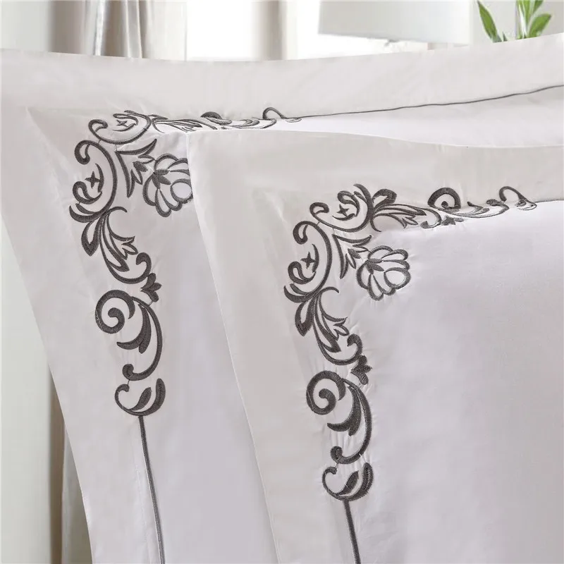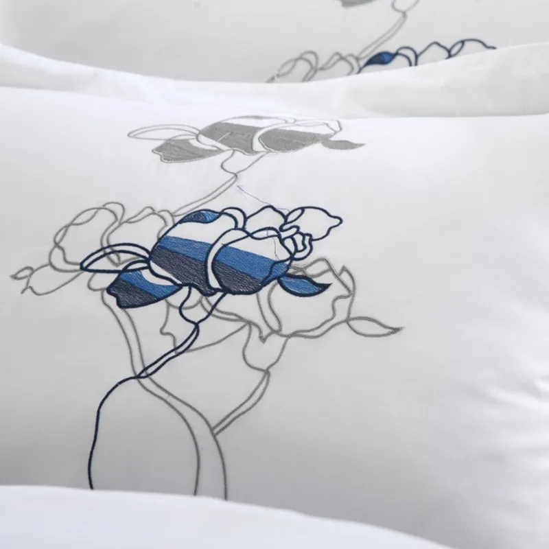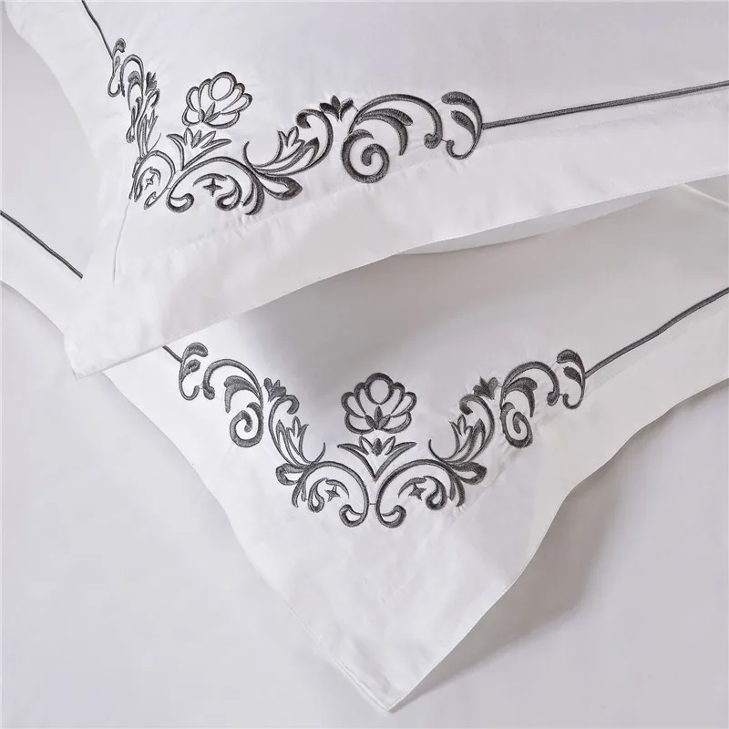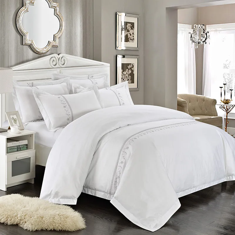 100% Cotton White Embroidered Bedding sets 4/6Pieces White Hotel Bedsheet set Duvet cover Pillow shams Double King Queen size